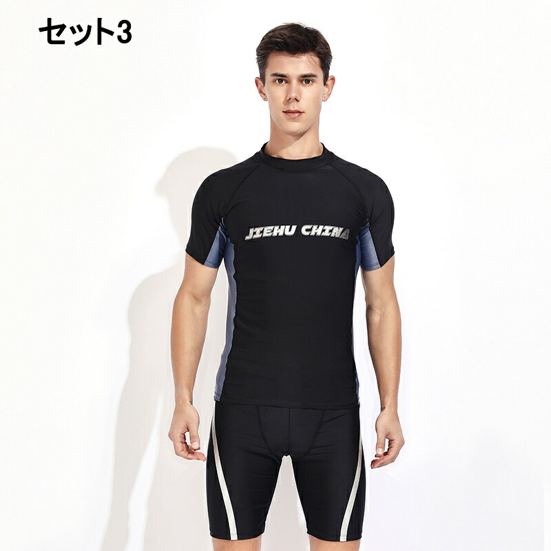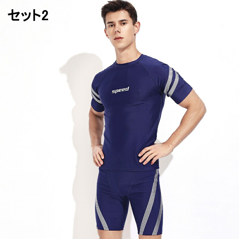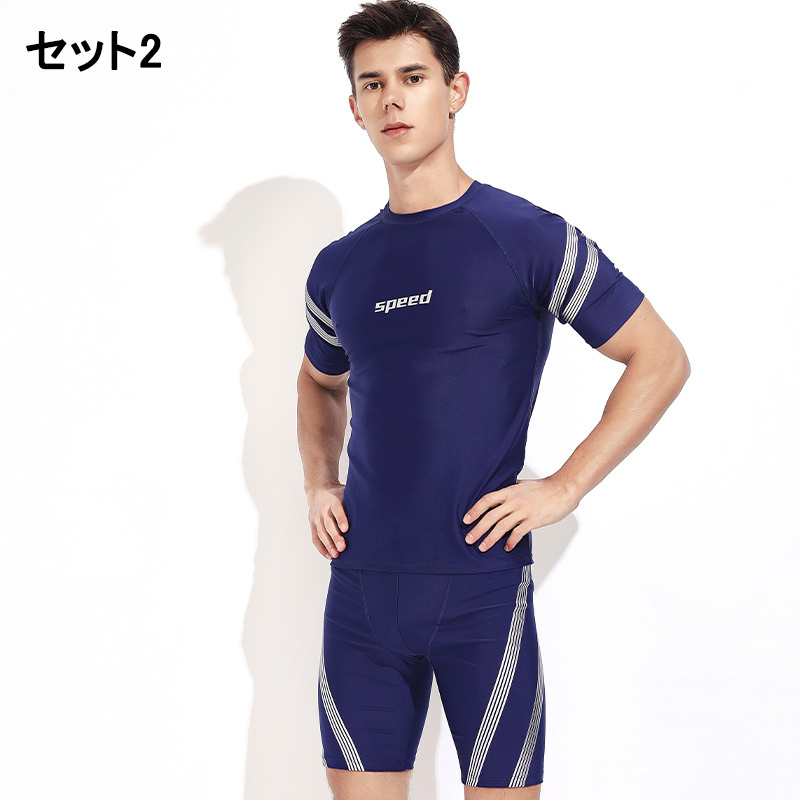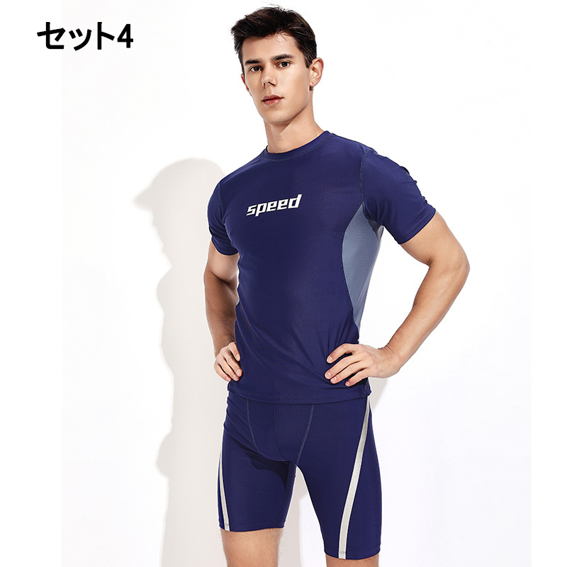 フィットネス水着 上下セット メンズ 水着セット UVカット 競泳 水泳 プール ジム スイミング 競泳水着 練習用 スイムパンツ 半袖 海水浴 男子