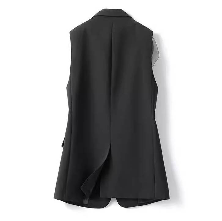 トップス ベスト ロング 袖なし ノースリーブ Vネック 襟付き アシンメトリー フェミニン シフォン フリル 前開き 異素材ミックス かわいい 大人可愛い きれいめ シンプル 上品 おしゃれ ガーリー クール エレガント モダン ラブリー キュート 都会的 ラグジュアリー ロマンティック 無地 春 秋 お出かけ パーティー イベント レストラン 女子会 休日 カフェ 重ね着 普段使い 着回し レイヤード モテ トレンド 流行 インスタ映え M L XL 2XL 小さいサイズ 大きいサイズ 黒 ブラック