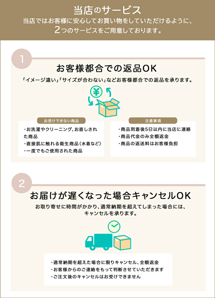 不良品または誤納品の場合を除き、返品・交換はお受けできませんのでご了承ください。