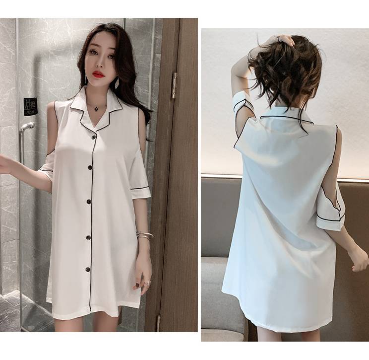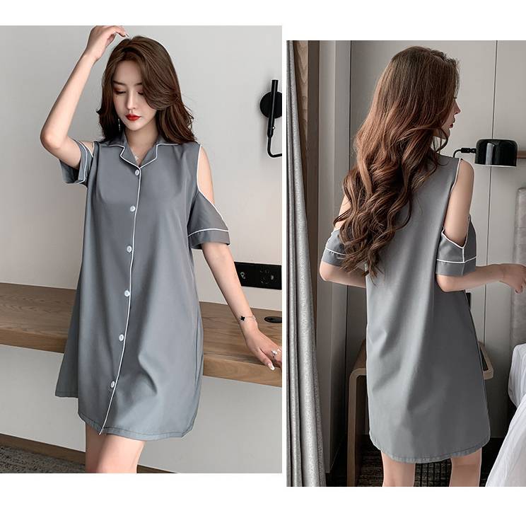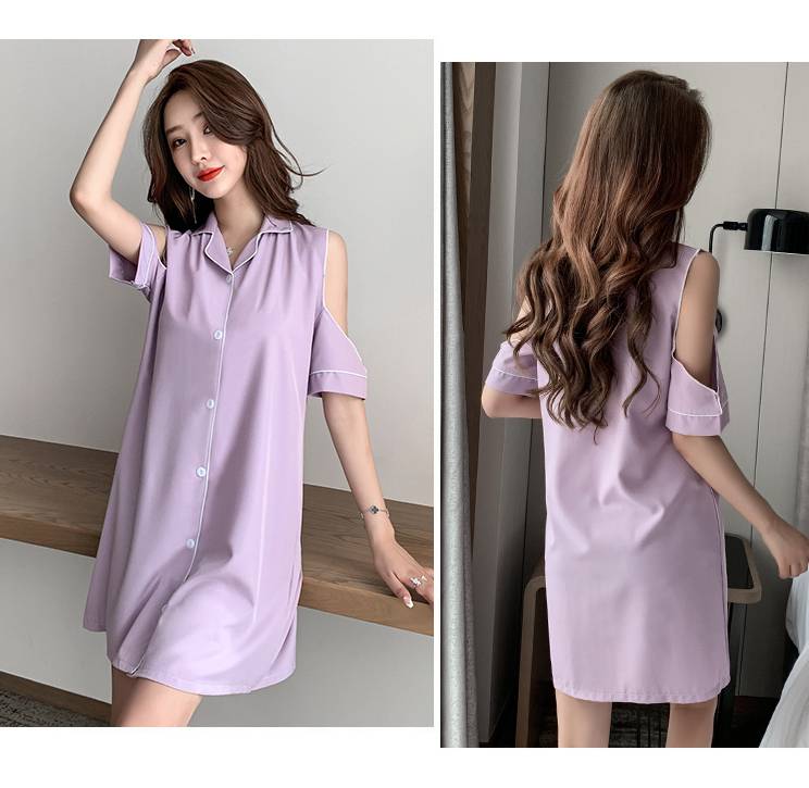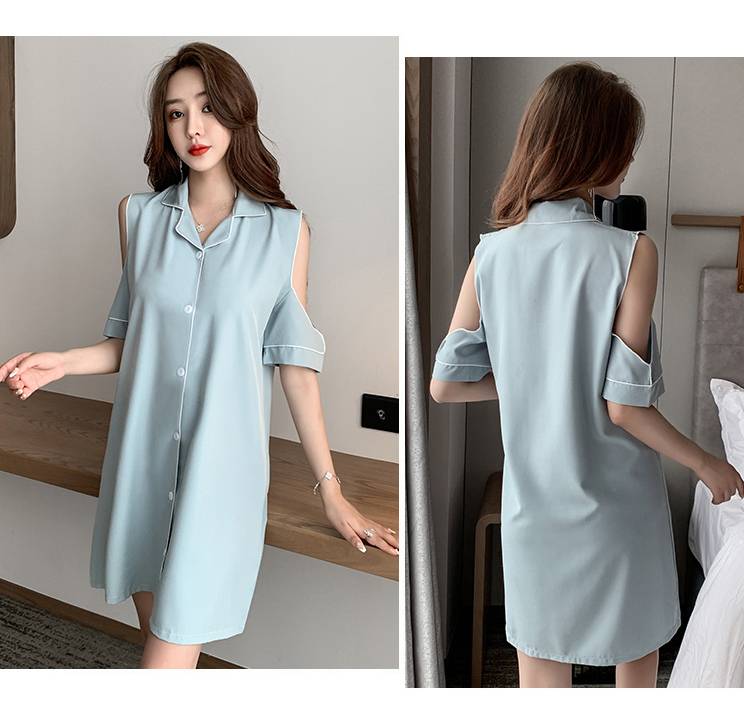 ルームウェア レディース パジャマ 部屋着 寝巻き 肩開き セクシー ナイトウェア ロング ロング丈 袖あり 半袖 シャツワンピース ネグリジェ かわいい 大人可愛い シンプル カジュアル おしゃれ お洒落 大人可愛い 大人女子 こなれ感 ラフ ラブリー キュート ガーリー 主役級 存在感 抜け感 無地 20代 30代 レディース 女子会 お泊まり 休日 着回し 普段使い 重ね着 韓国 韓国系 オルチャン スタイル 楽ちん
