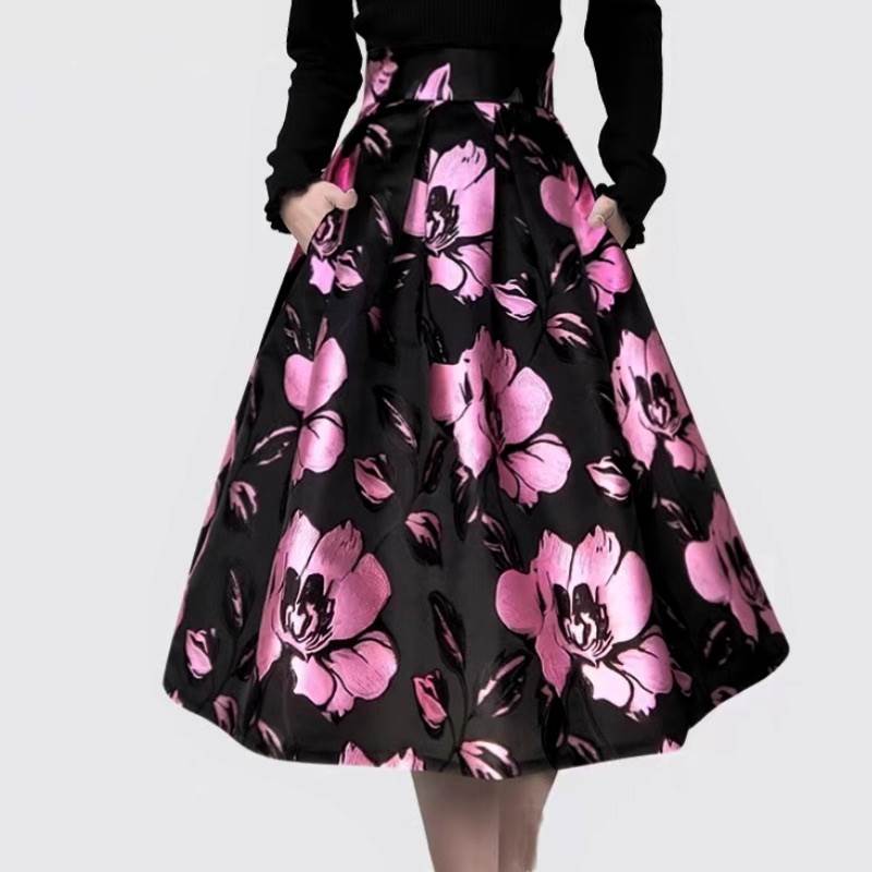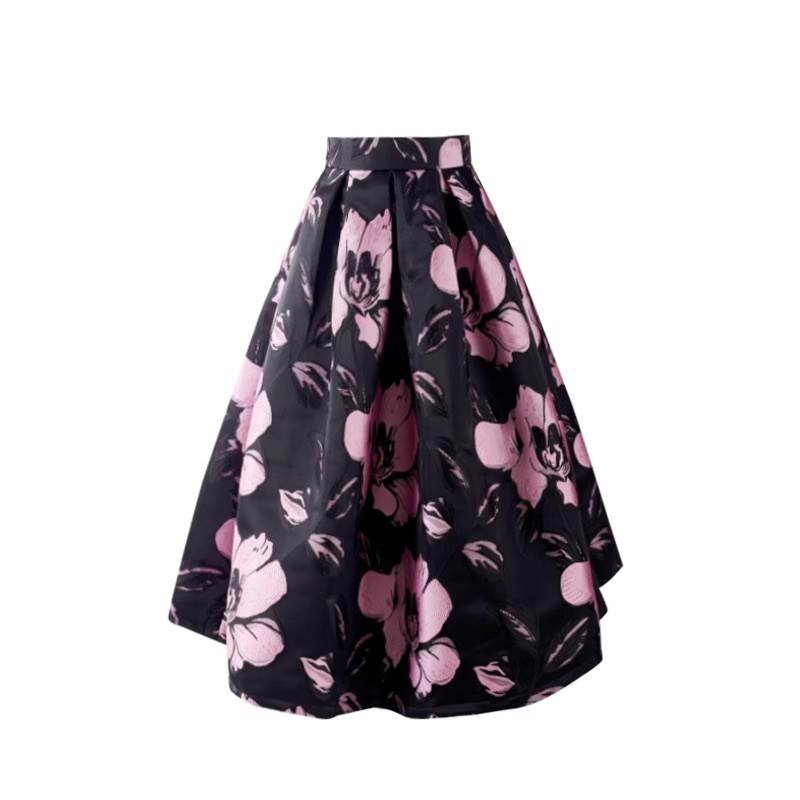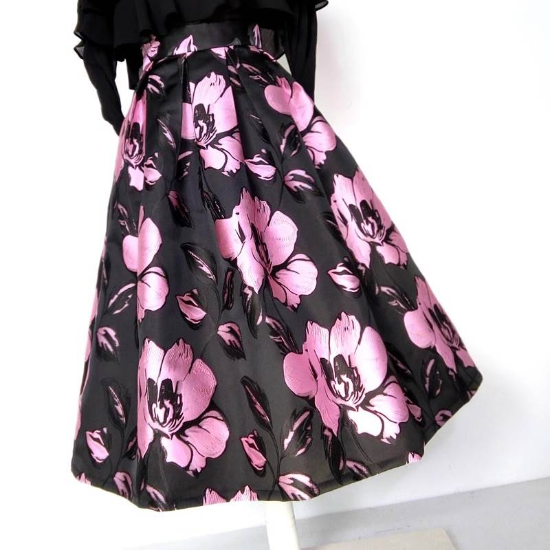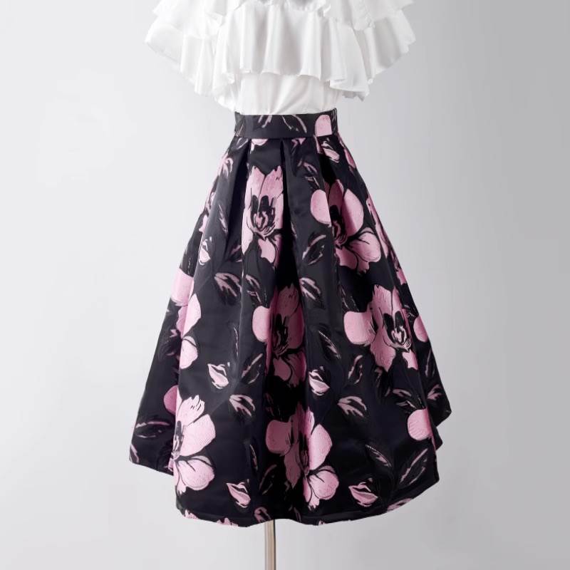 スカート ボトムス レディース フレア 膝下 フェミニン ハイウエスト ジャガード かわいい 大人可愛い 上品 おしゃれ レトロ ガーリー エレガント 存在感 ラブリー キュート クラシカル ロマンティック 花柄 フラワー 春 秋 冬 お出かけ パーティー イベント 女子会 休日 ショッピング コンサート カフェ 体型カバー 美脚 普段使い 着回し レイヤード モテ 清楚 トレンド 流行 インスタ映え S M L XL 2XL 3XL 小さいサイズ 大きいサイズ ゆったり 黒 ブラック ピンク パープル