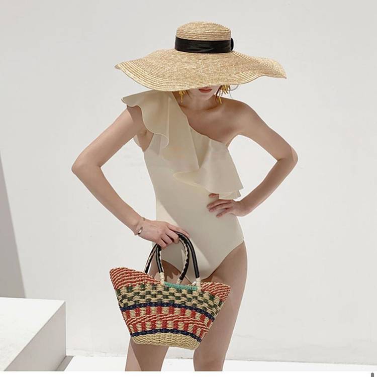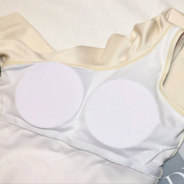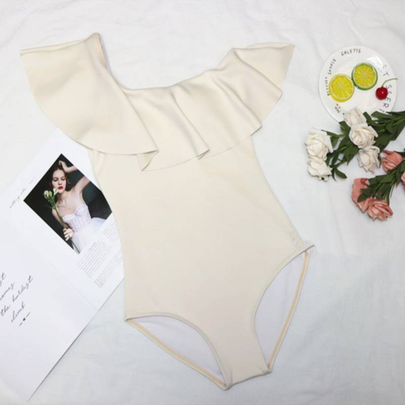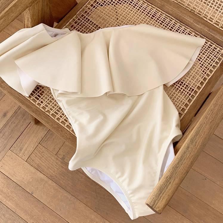 水着 スイムウェア ワンピース 体型カバー パッド付き フリル 胸元 谷間魅せ 盛れる 水陸両用 かわいい ワンショル カジュアル エレガント 大人っぽい おしゃれ 存在感