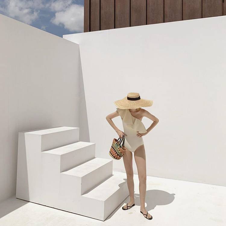 肩から胸元にかけた大きなフリルが上品なセパレート水着!
