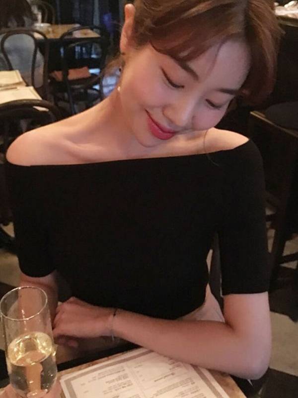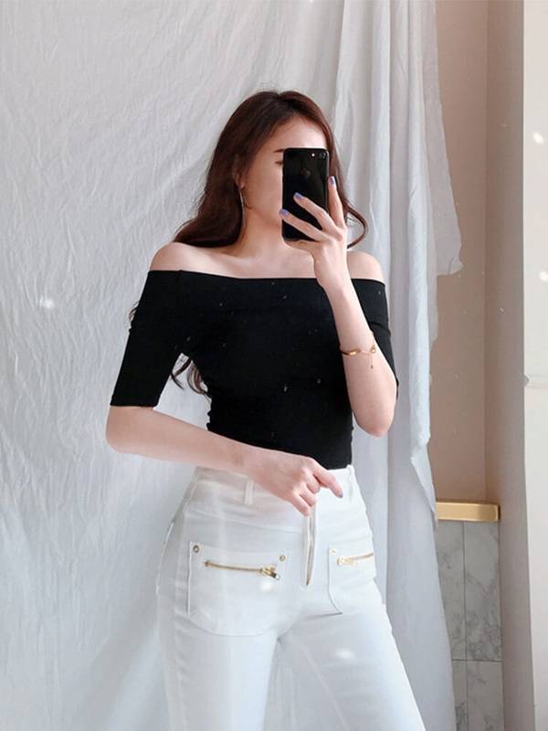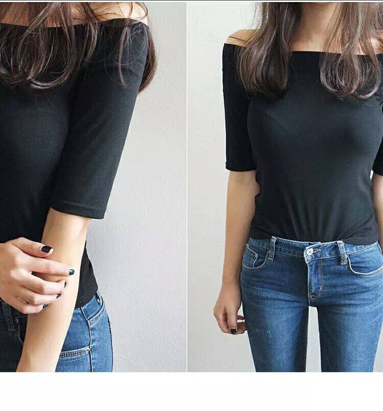 カットソー オフショルダー トップス 五分袖 春 無地 ブラック 背中見せ タイト 休日 お出かけ デート コーデ 普段使い 着回し ファッション おしゃれ きれいめ シンプ
