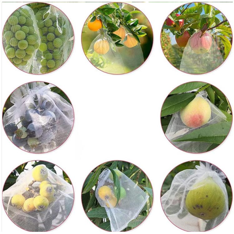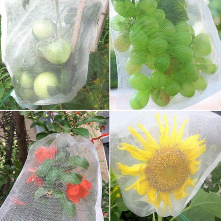 巾着袋のように予め袋口に口を縛る紐が付いているため、袋にかぶせたいものを入れ、口を閉めるだけです。開閉にも非常に便利です。袋に入れたまま果実を保存できる。ブドウ、リンゴ、イチゴ、イチジク、植物、野菜、花を保護し、植物を健康に保ちます。