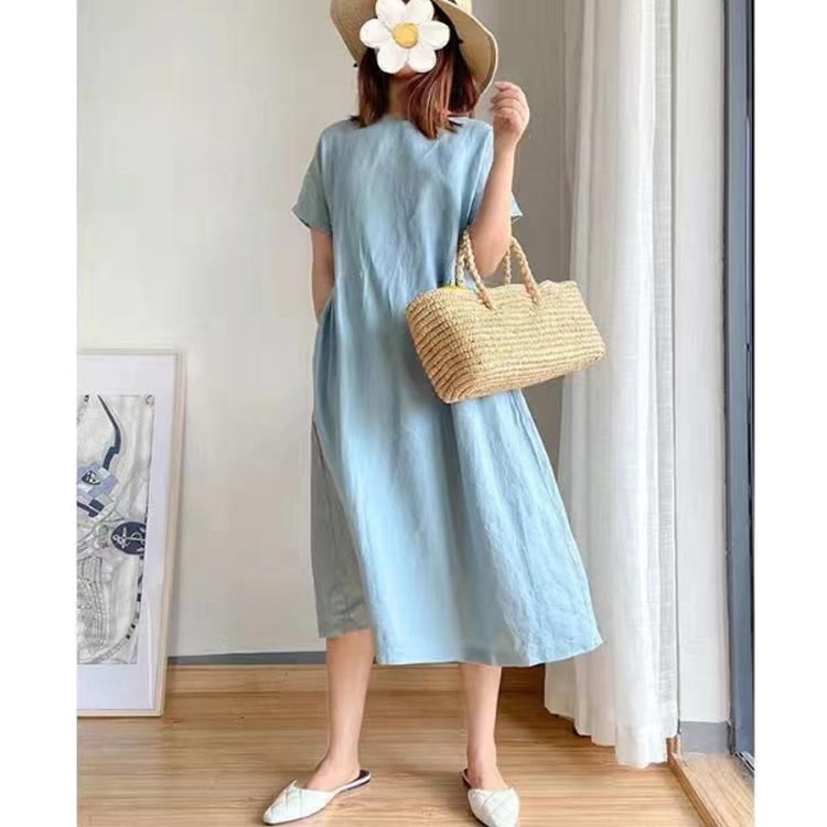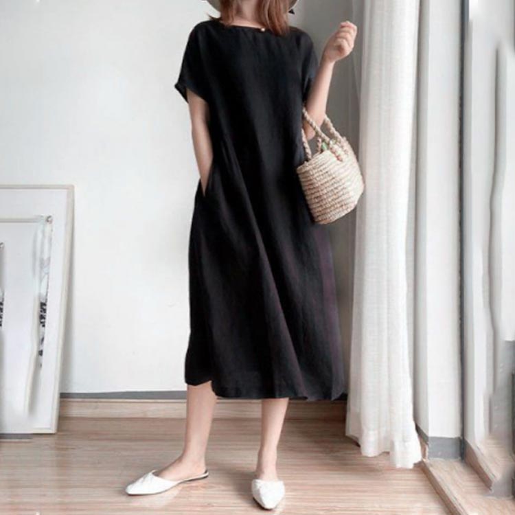 M~4XL ロング丈ワンピース 半袖