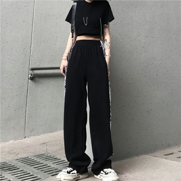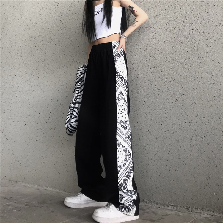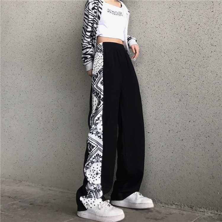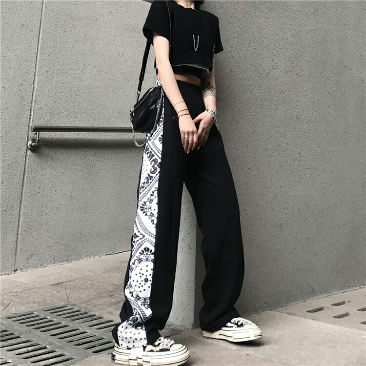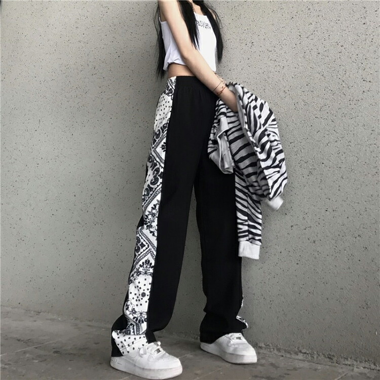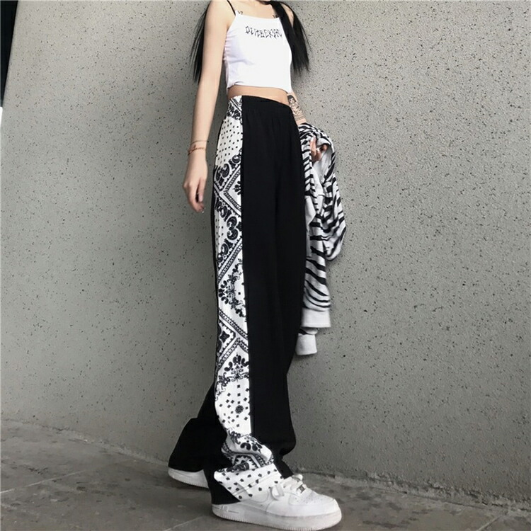 7サイズ S M L XL 2XL 3XL 4XL サイドバンダナ柄パンツ ペイズリー柄 ボトムス ワイドパンツ ストレートパンツ ブラック ホワイト モノトーン ダンス ストリート