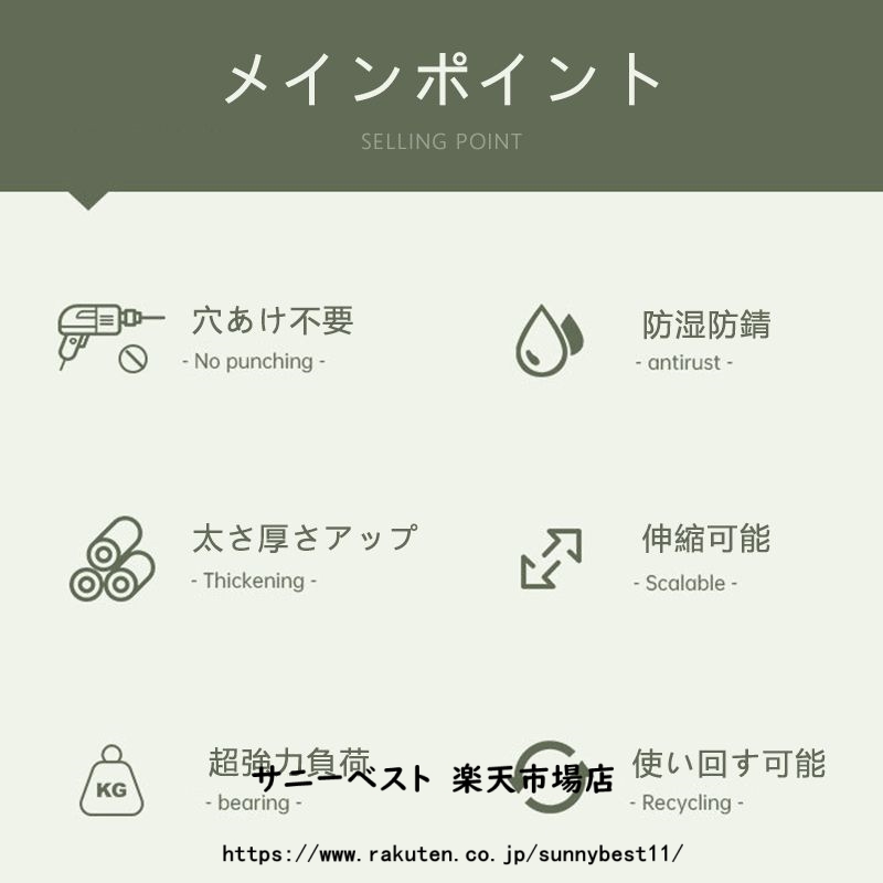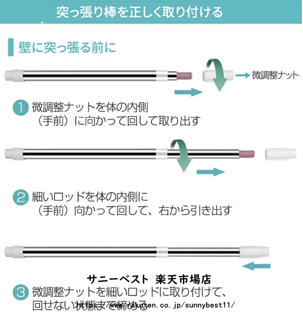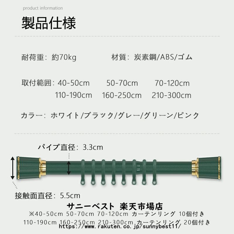 カーテンリング付き突っ張り棒 強力 全