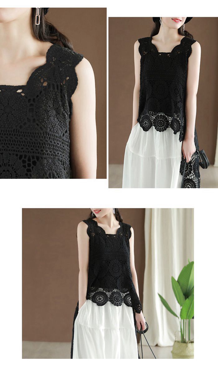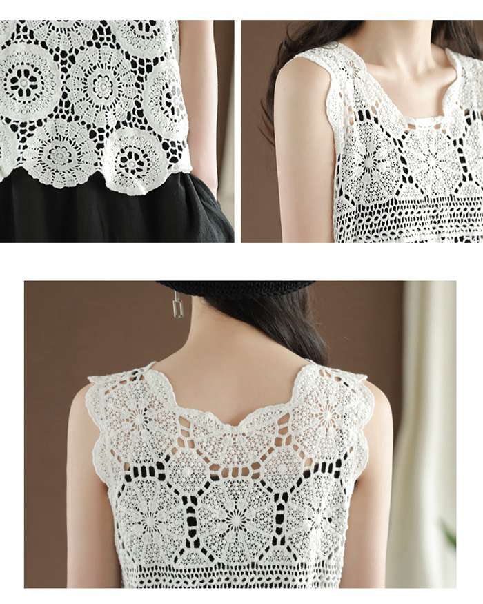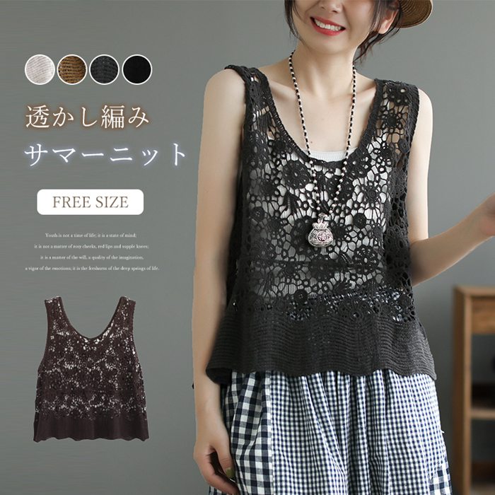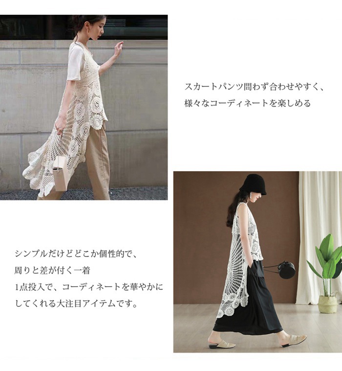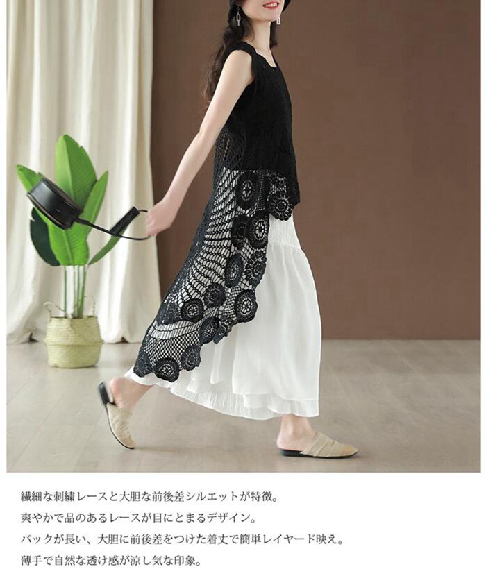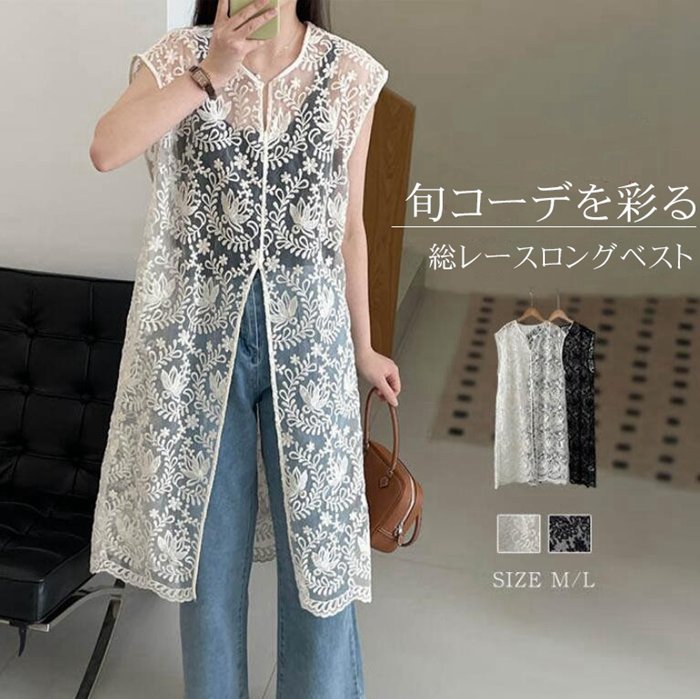 レース ベスト ノースリーブ 花柄 刺