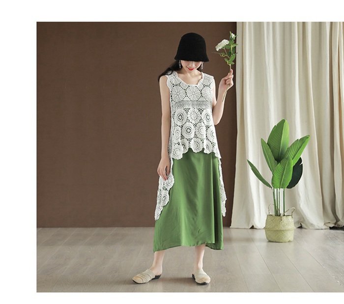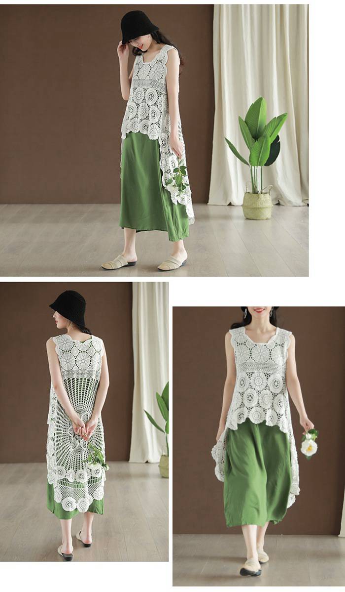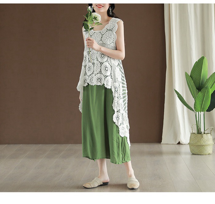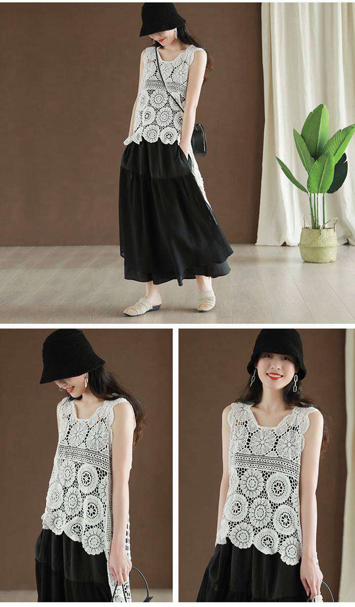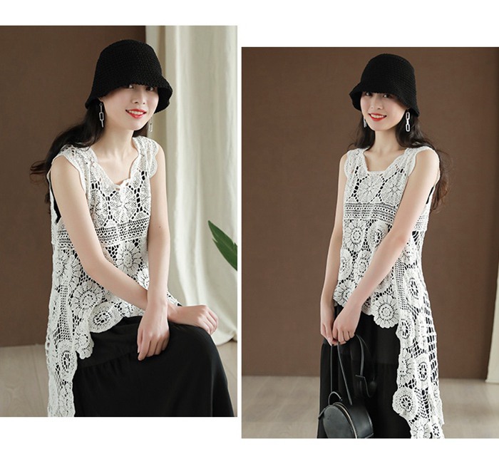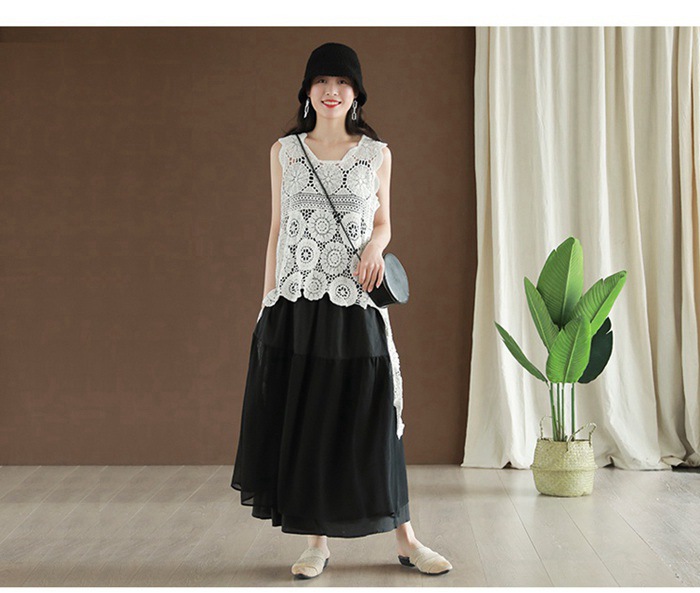 レース ベスト ノースリーブ 花柄 刺