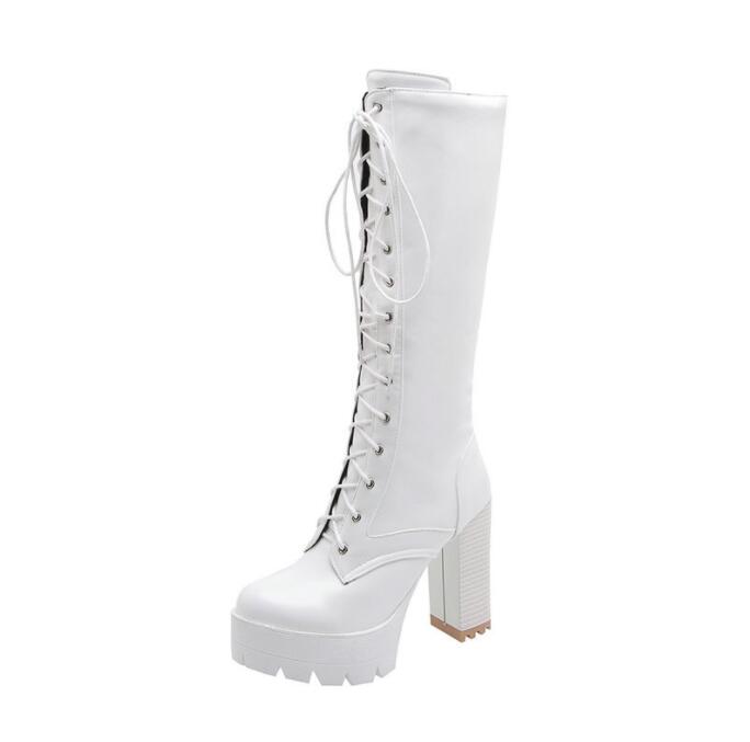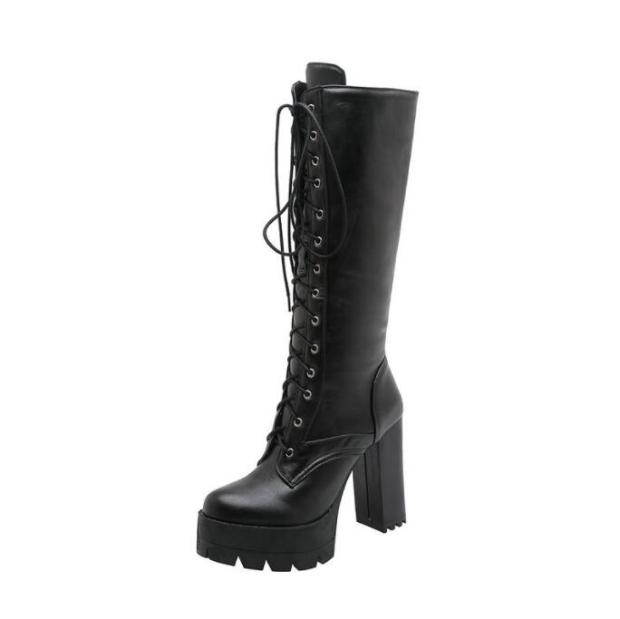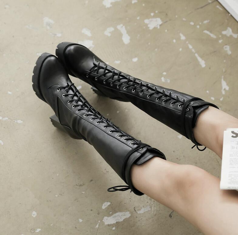 厚底ブーツ ロングブーツ レースアップ