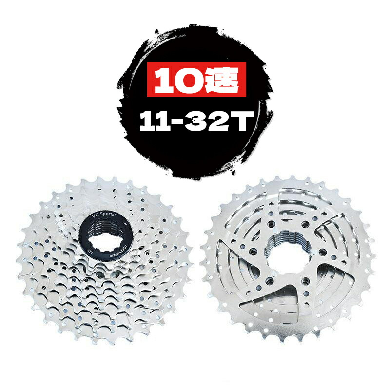 自転車 スプロケット シルバー 10S 11-32T + チェーン 10速 10スピードハーフホローチェーン クイックリンク付 シルバー 汎用品 自転車パッツ