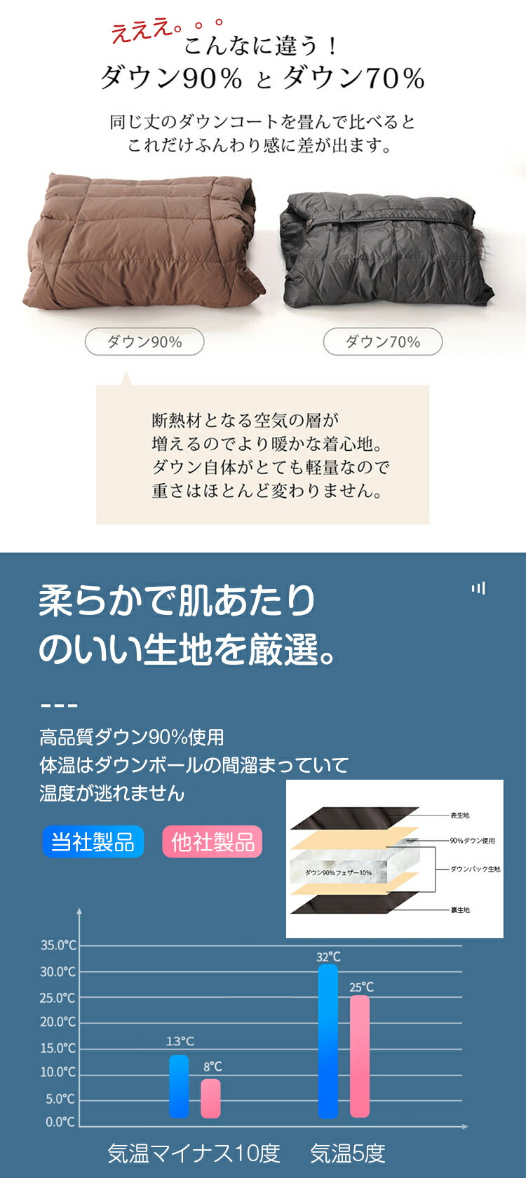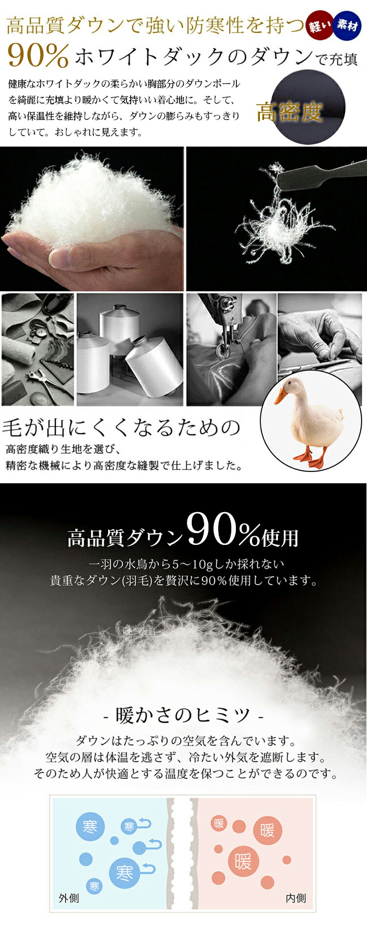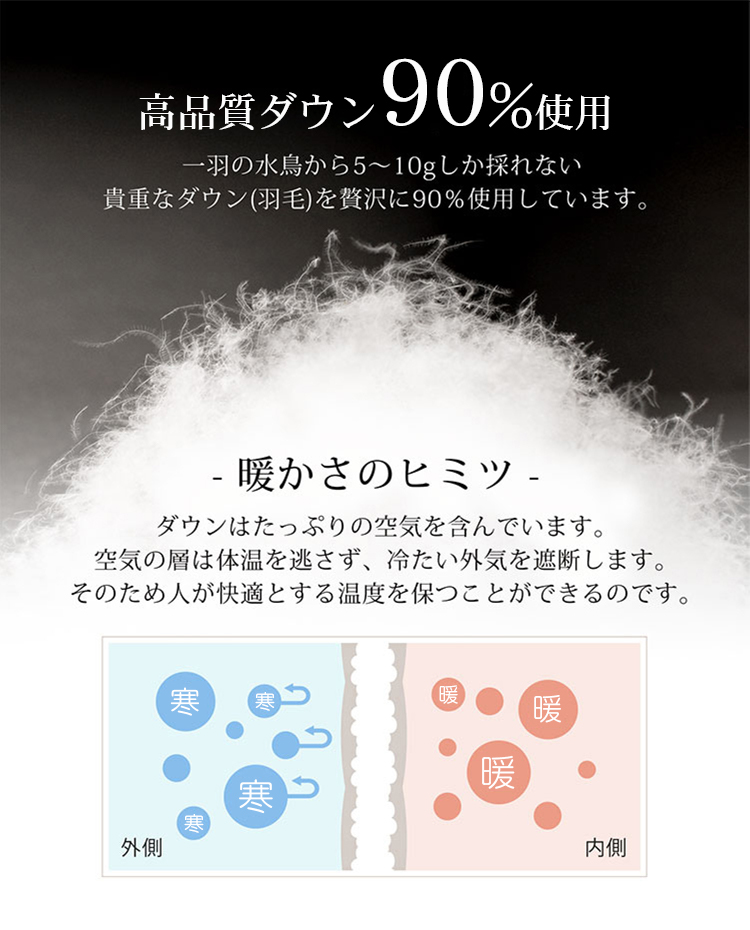 中 綿 : ダウン 90% フェザー 10%