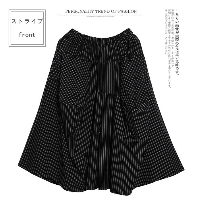 スカート風ワイドパンツ レディース 春 秋 冬 七分丈 袴パンツ ストライプ柄パンツ ガウチョパンツ 個性的 モード系 男女通用 ハイウエスト ウエストゴム ボトムス ポケット付き 美ライン 楽ちん