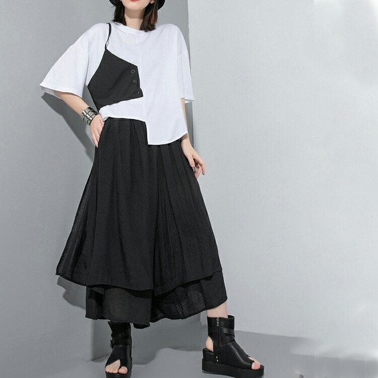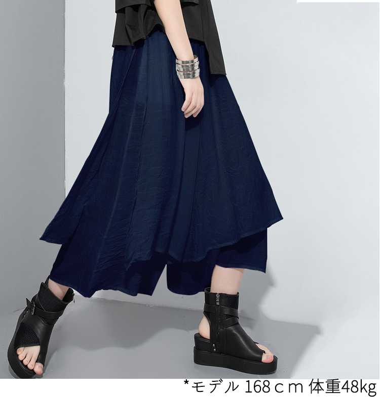 袴パンツ ワイドパンツ レディース スラブパンツ ワイドパンツ ガウチョ アシンメトリー ゆるひら 春 夏 9分丈 袴パンツ 変形 ダンスパンツ ドレープ モード系 イージーパンツ ボトムス スカンツ