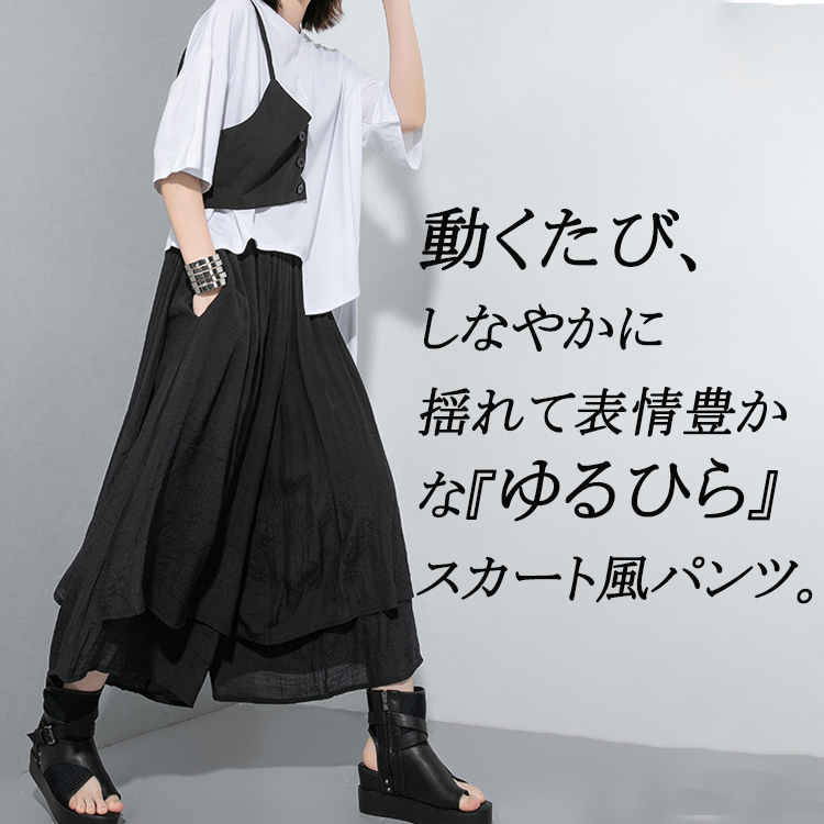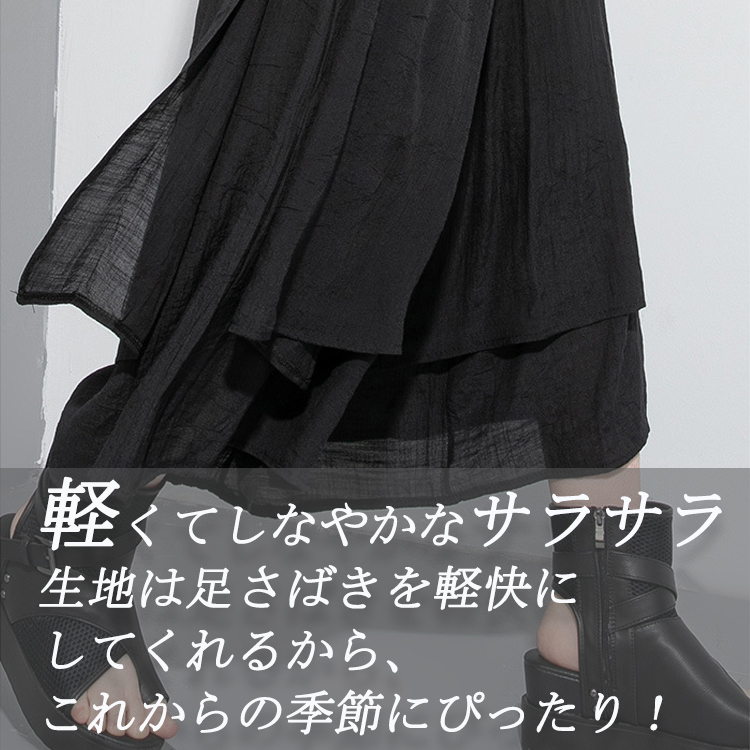 アシンメトリー ゆるひら スラブパンツ ワイドパンツ レディース 春 夏 春コーデ 9分丈 袴パンツ 変形 ダンスパンツ ドレープ モード系 イージーパンツ ボトムス スカンツ ガウチョ きれいめ ゆったり 送料無料