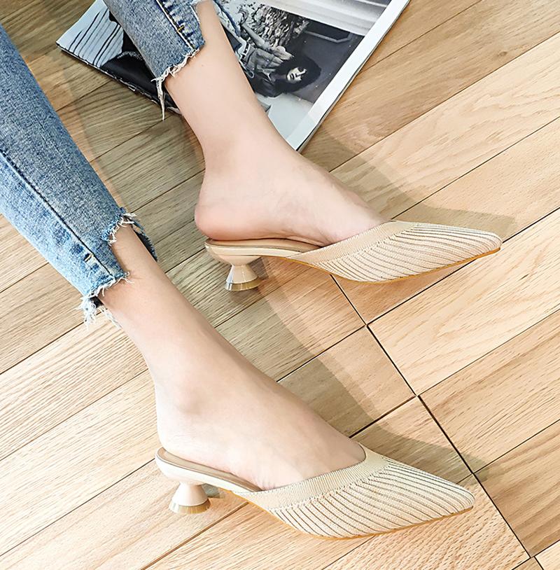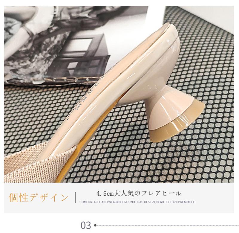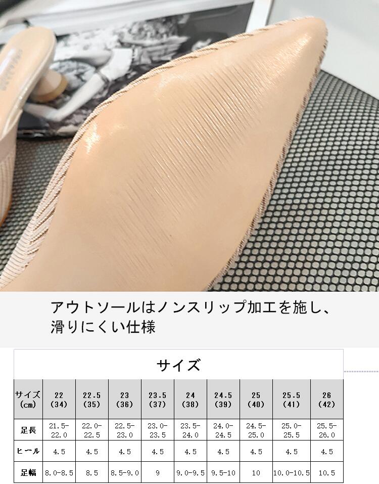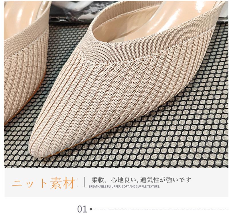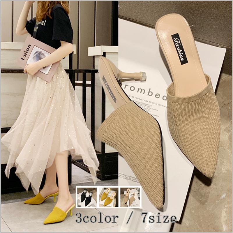 ポインテッドトゥミュール ヒール レディース スリッポンサンダル ニット 夏 22~26cm シンプル ポインテッドトゥ スクエアトゥ 美脚 フラットタイプでさらっと履ける シューズ ミュール スリッ
