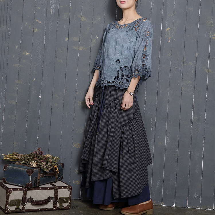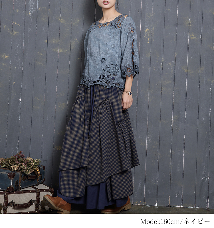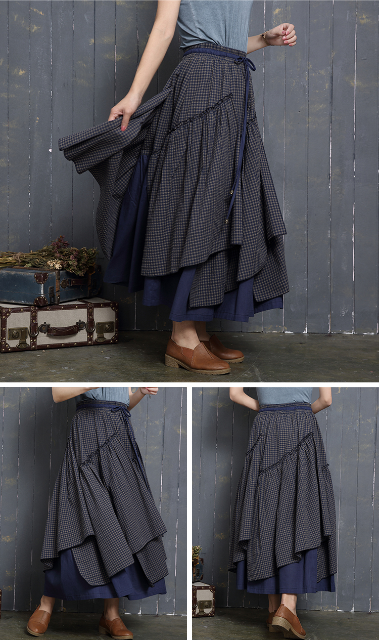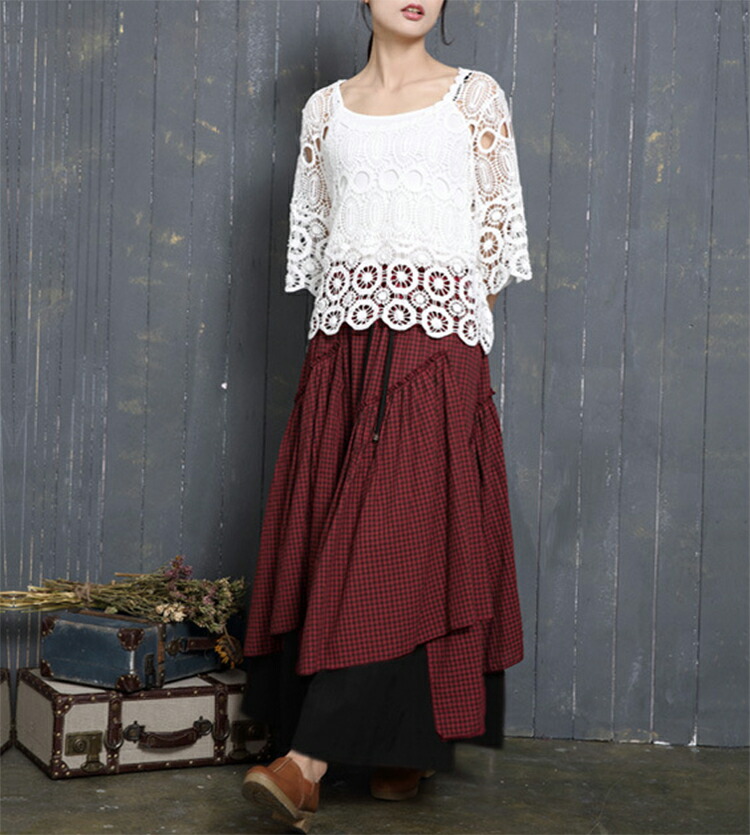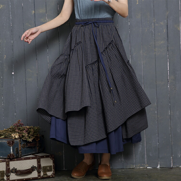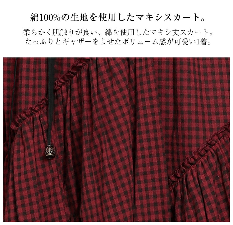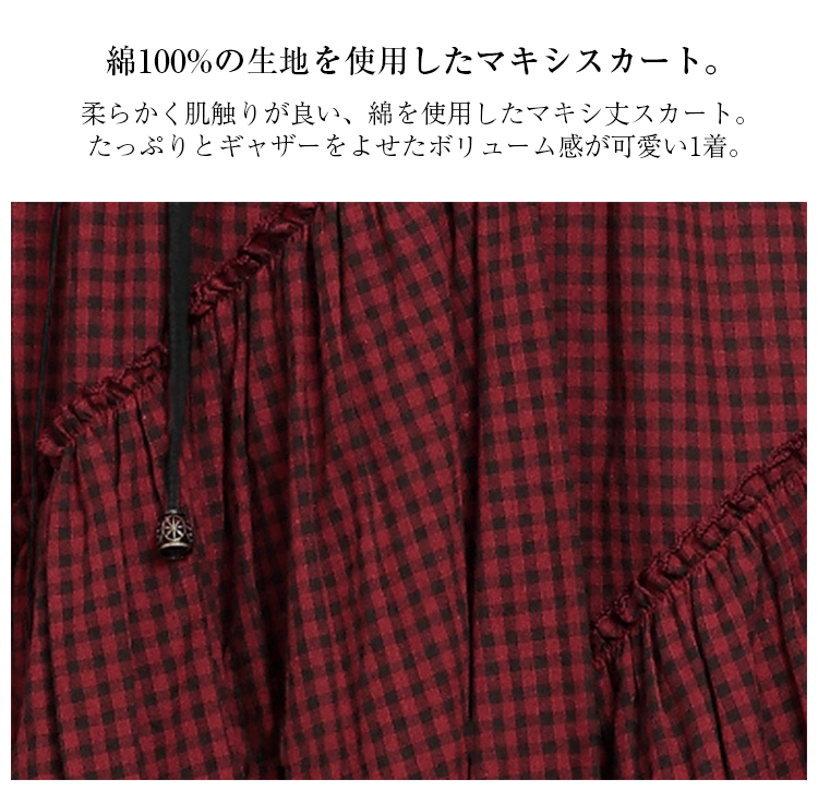 アシンメトリー チェック柄 スカート レディース 春 夏 ロングスカート 変形スカート 綿100% スカート マキシ丈 フレアスカート ボトムス チェック柄 ヘムライン ウエストゴム アレンジ 調節
