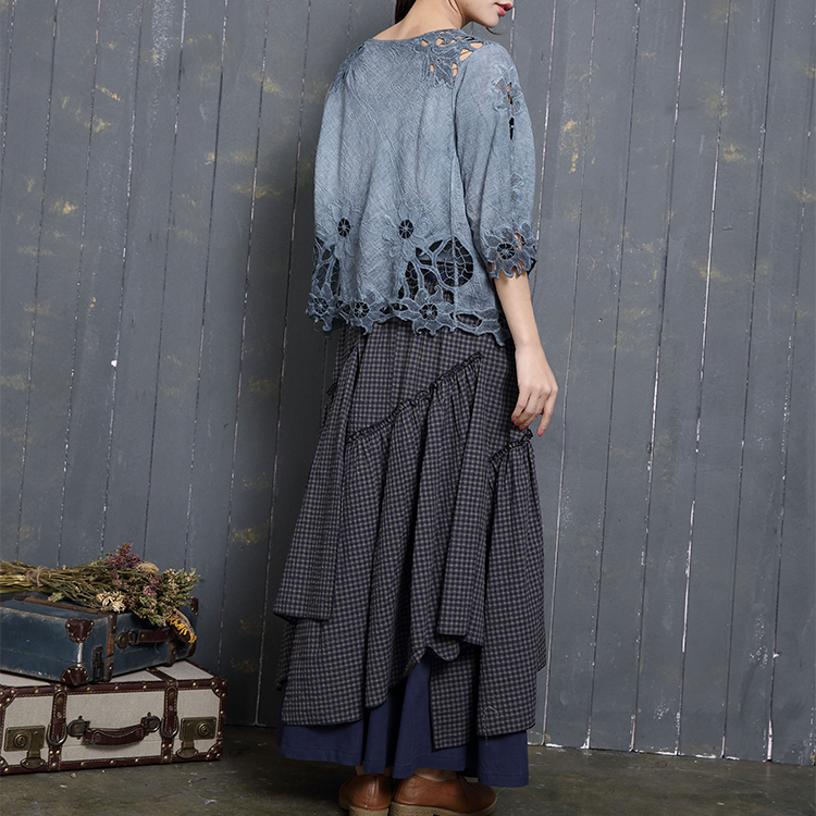 刺繍 スタンドカラー ブラウス ロング ブラウス シャツ レディース 半袖 バルーン袖 綿 トップス おしゃれ レース 通勤 立ち襟 きれいめ 仕事 可愛い 大きいサイズ 羽織 S M L 夏春 デザイン 送料無料