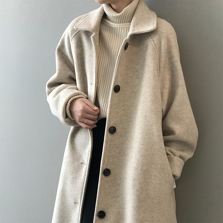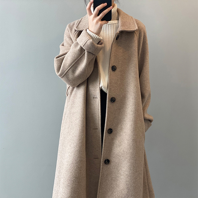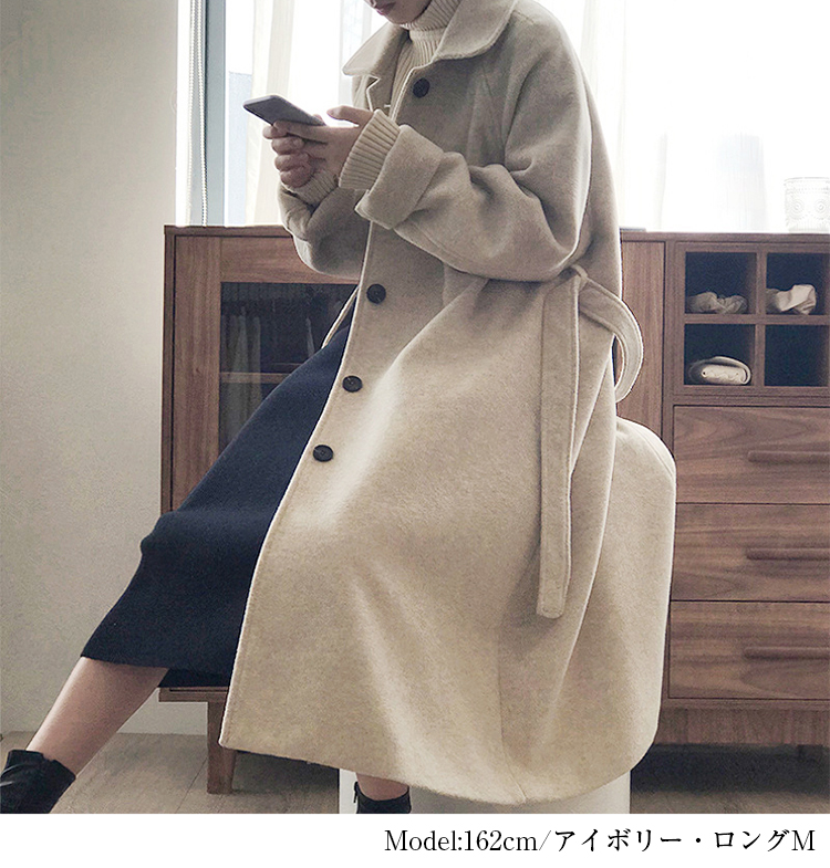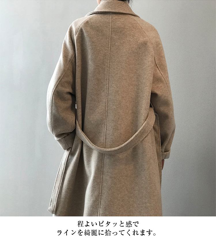 しっかり、かつ柔らかく肌触りのよい生地を使ったテーラードロングコート。