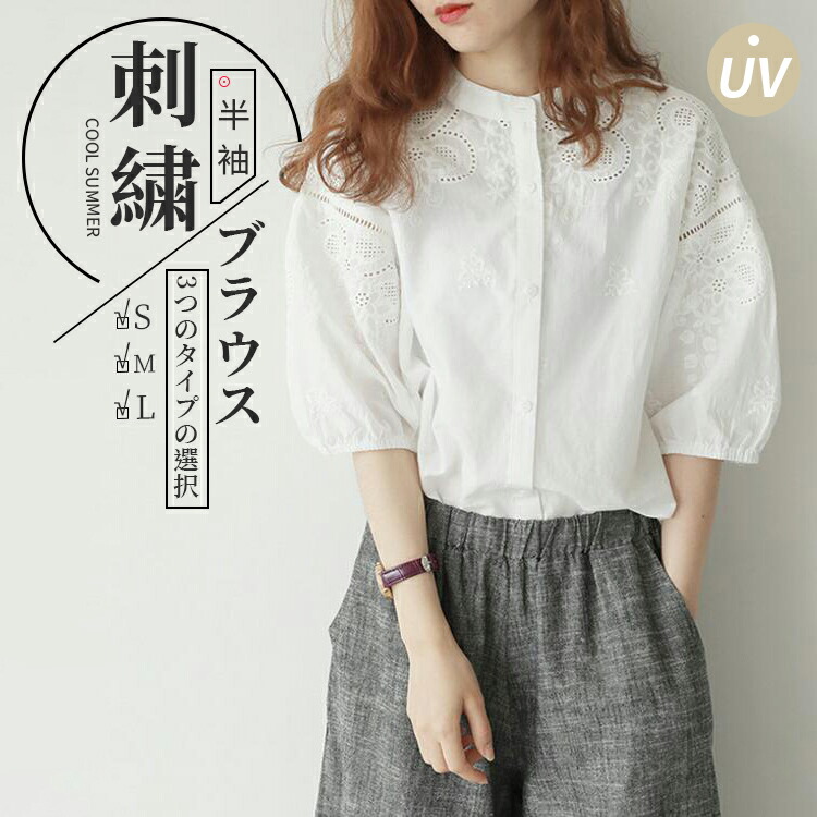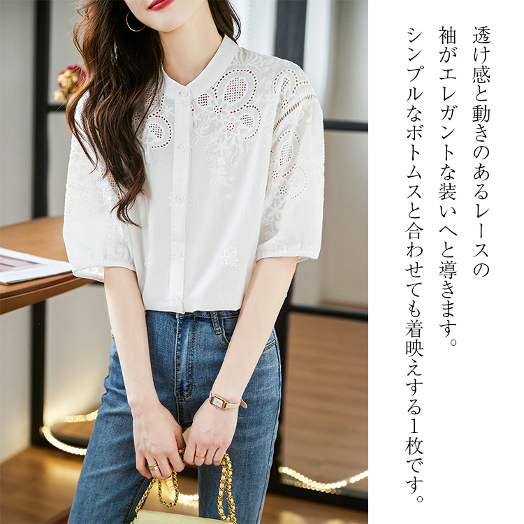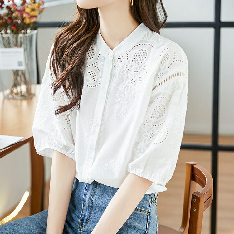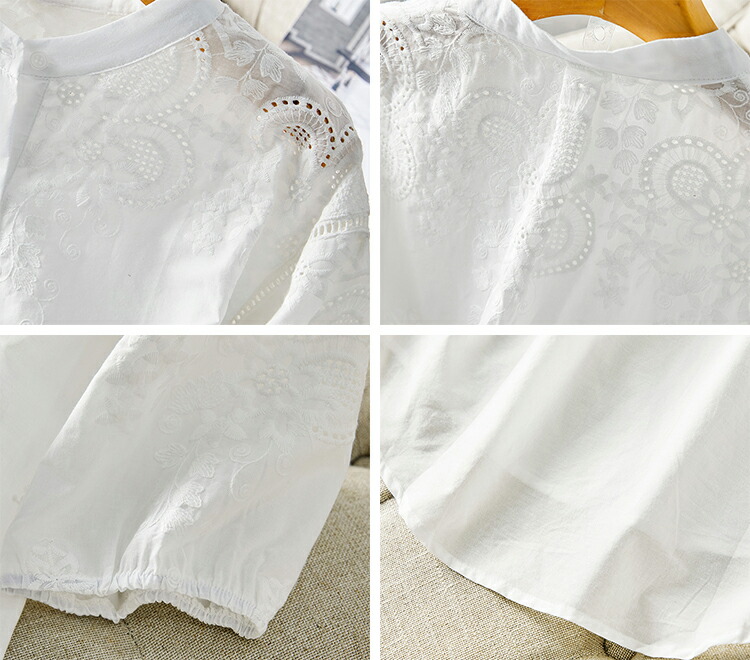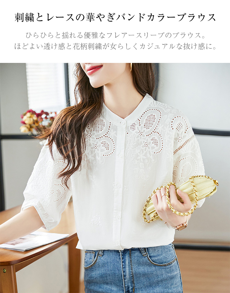 刺繍スタンドカラーブラウス ブラウス