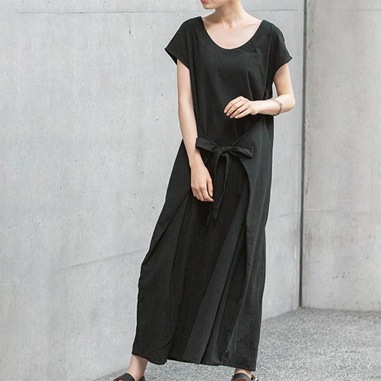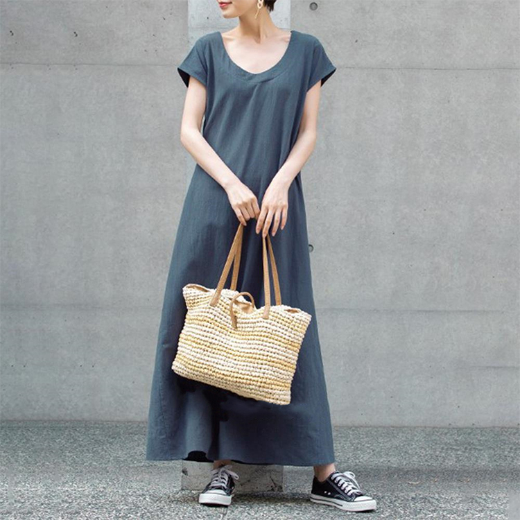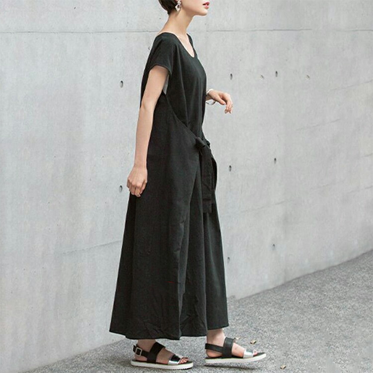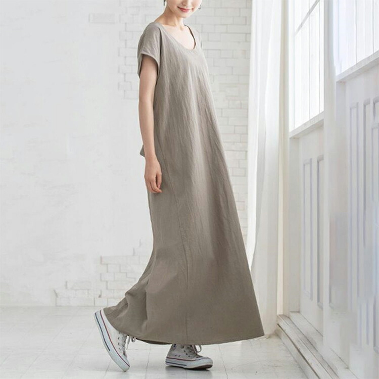 揺れるワンピース 袖無し 綿ロング丈上品ワンピース きれいめ ふんわり ロングワンピース カジュアル ゆったりワンピース 着やせ フリー