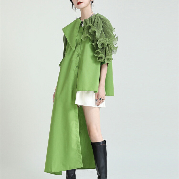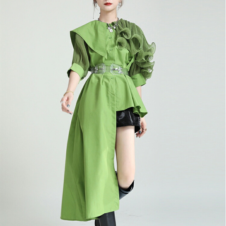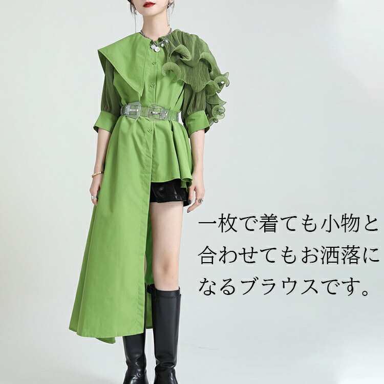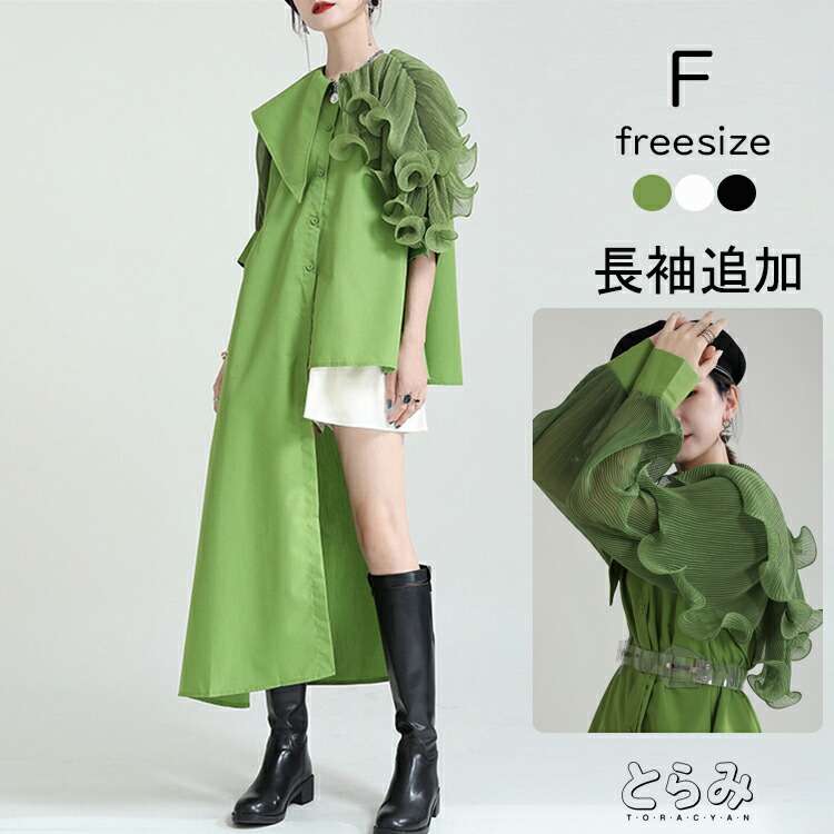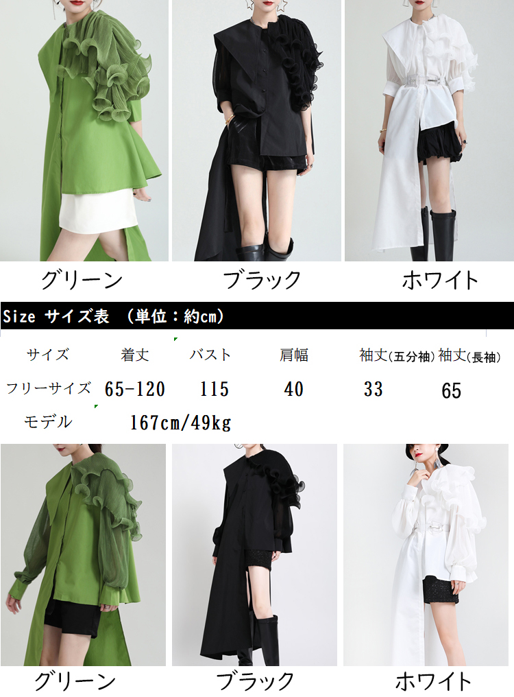 とらみ■商品名アシンメトリー シャツワンピース レディース 春 夏 秋 五分袖 長袖 襟付き アシンメトリー ワンピース ロングシャツ フリル ケープカラー ビッグカラー 二の腕カバー 変形デザイン モード系 きれいめ おしゃれ オフィス 美ライン 楽ちん ブラック ホワイト グリーン 体型カバー 送料無料 とらみ■サイズ(cm)着丈 バスト 肩幅 袖丈(五分袖) 袖丈(長袖)F 65-120 115 40 33 65多少の誤差が生じる場合がございます。予めご了承下さいませ■関連商品当店のコート・ジャケット 商品一覧 当店の個性溢れるアイテム特集■素材ポリエステル100%なし■カラー■グリーン ブラック ホワイト画面上と実物では多少色具合が異なって見える場合もございます。ご了承ください。■商品説明『おしゃれ可愛い女性になれる。』