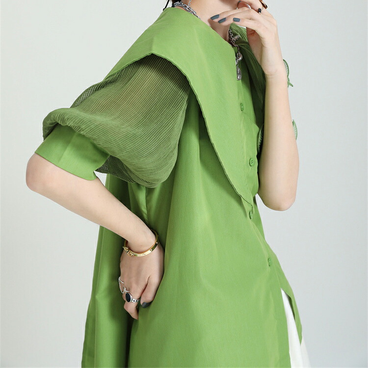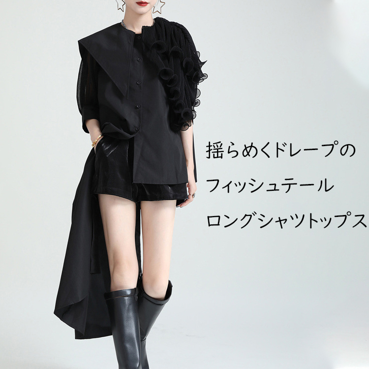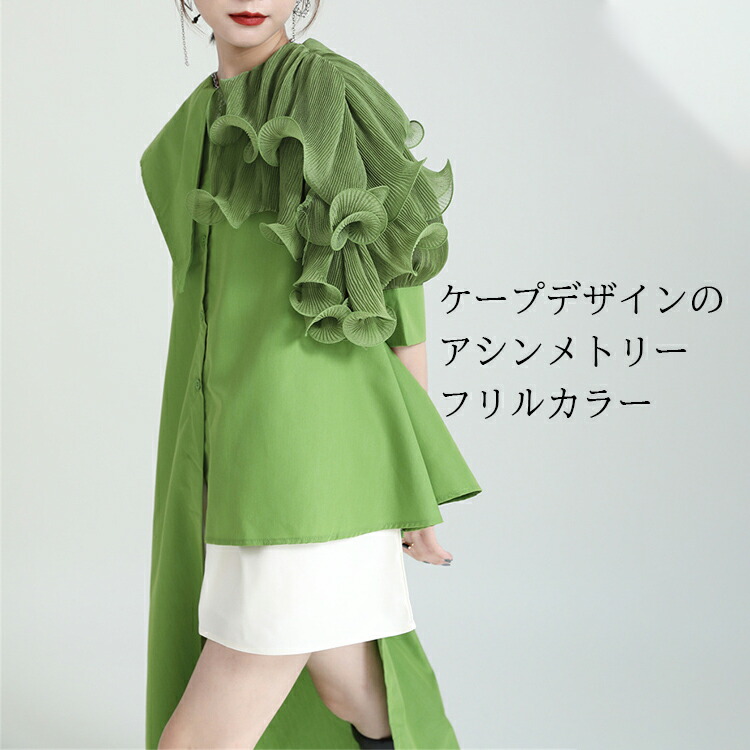 袖丈2TYPE選べる ケープ ブラウス レディース 長袖 半袖 アシンメトリー トップス フリル ケープカラー ビッグカラー 二の腕カバー 変形デザイン モード系 きれいめ おしゃれ 無地 春 夏 秋 冬 体型カバー 送料無料
