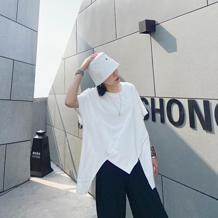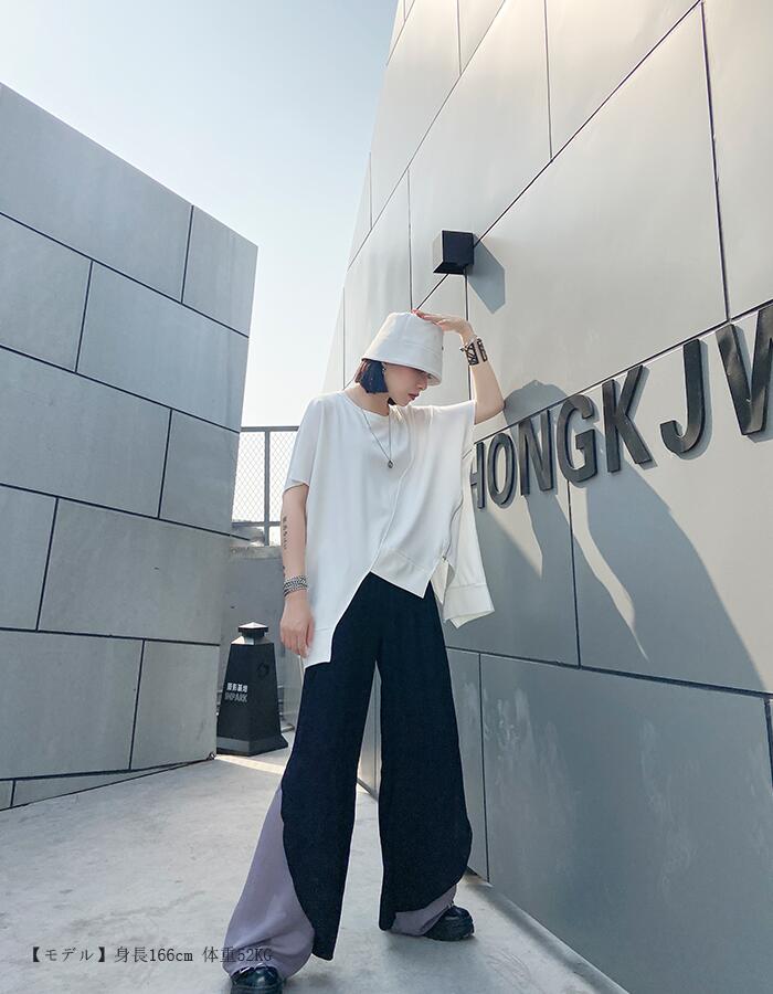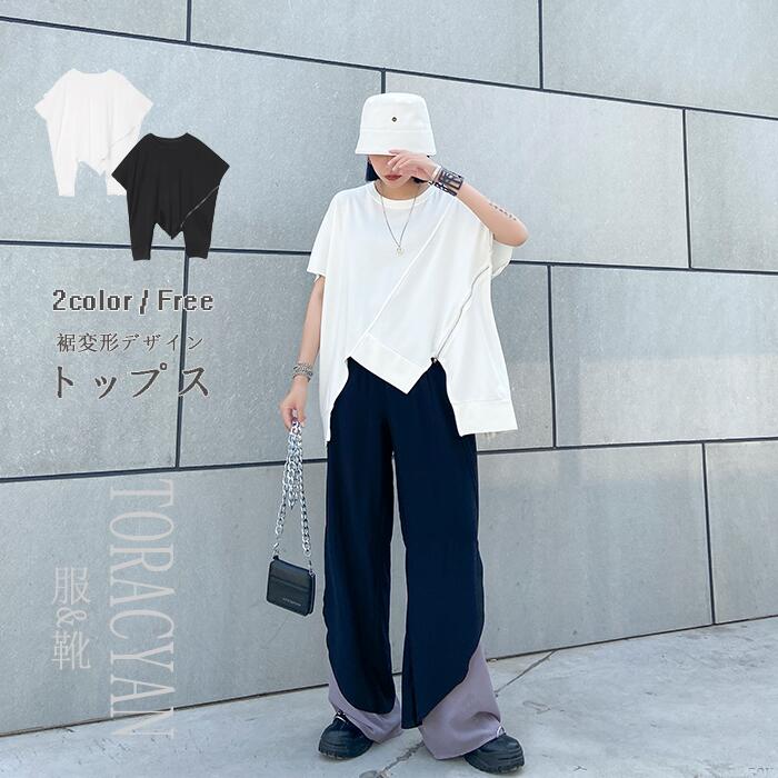柔らかいTシャツ 裾変形デザインが今年らしいスタイリングを演出 サイドチュニックTレディースファッション トップス Tシャツ カットソー