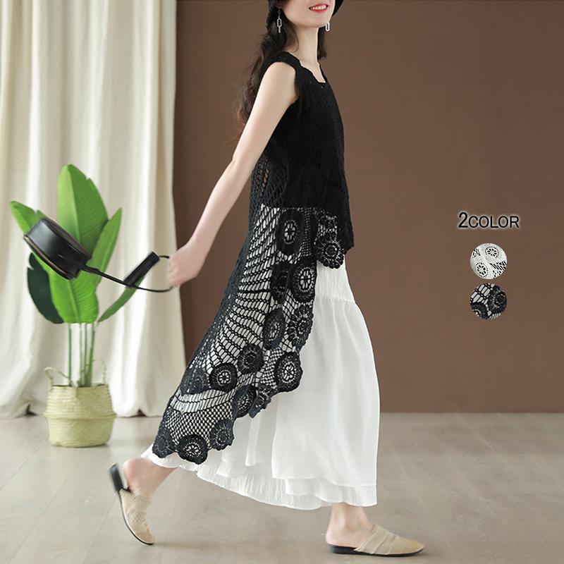 裾から深めに入った変形デザインが今年らしい、レイヤードスタイルを楽しめるトップス。