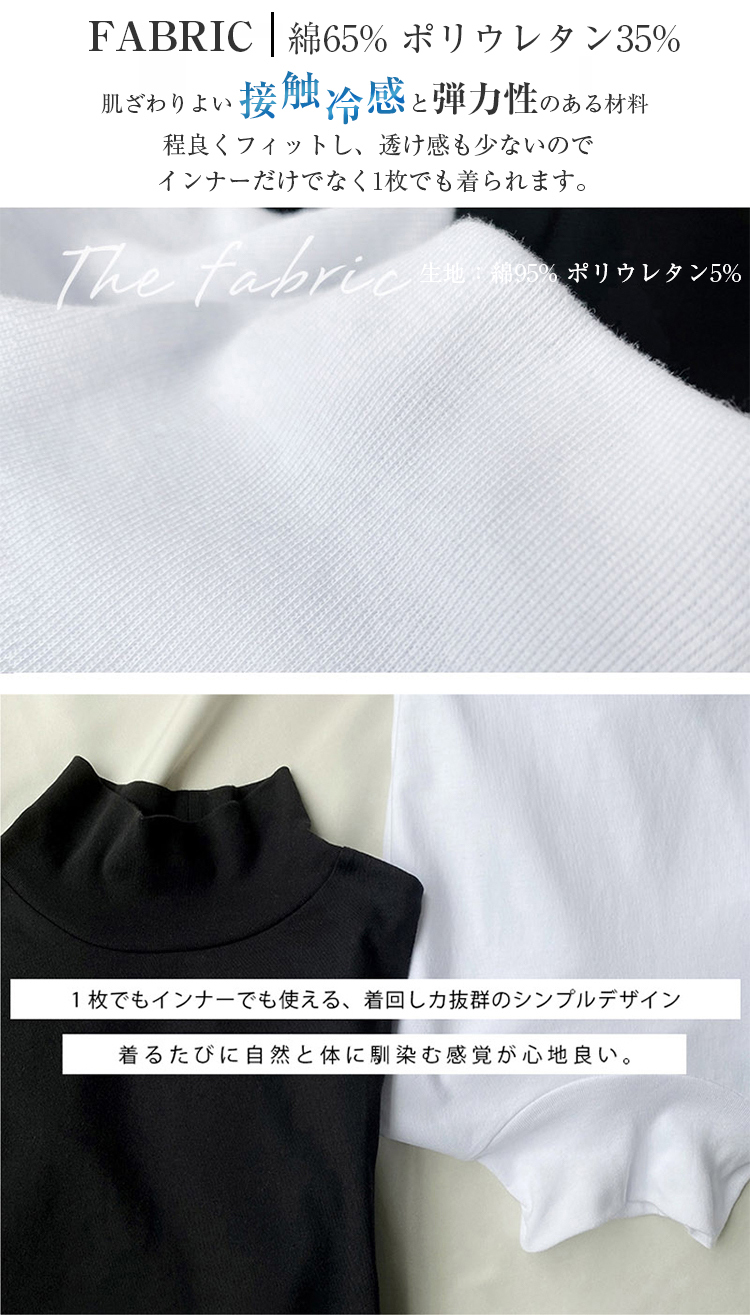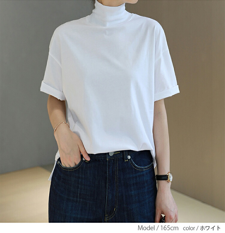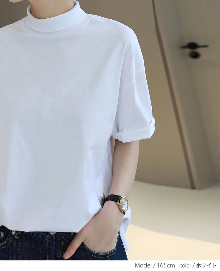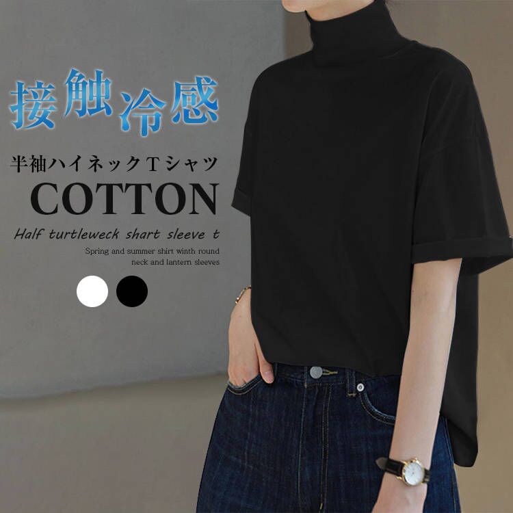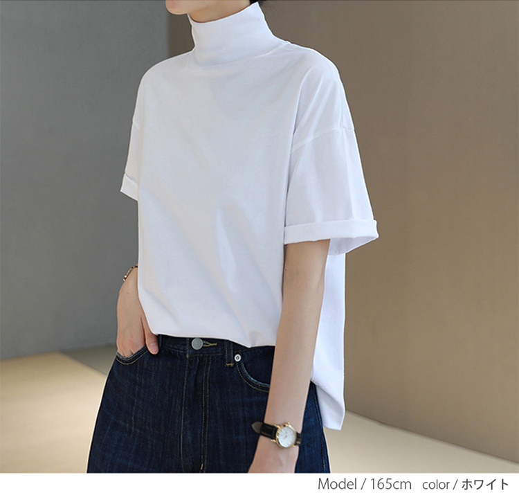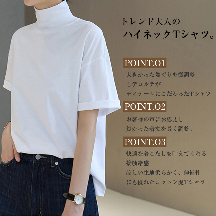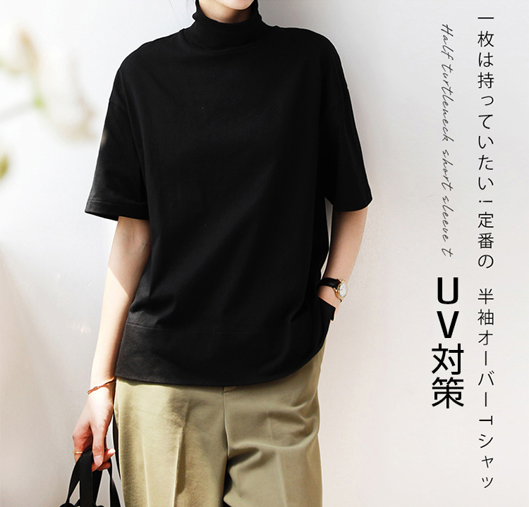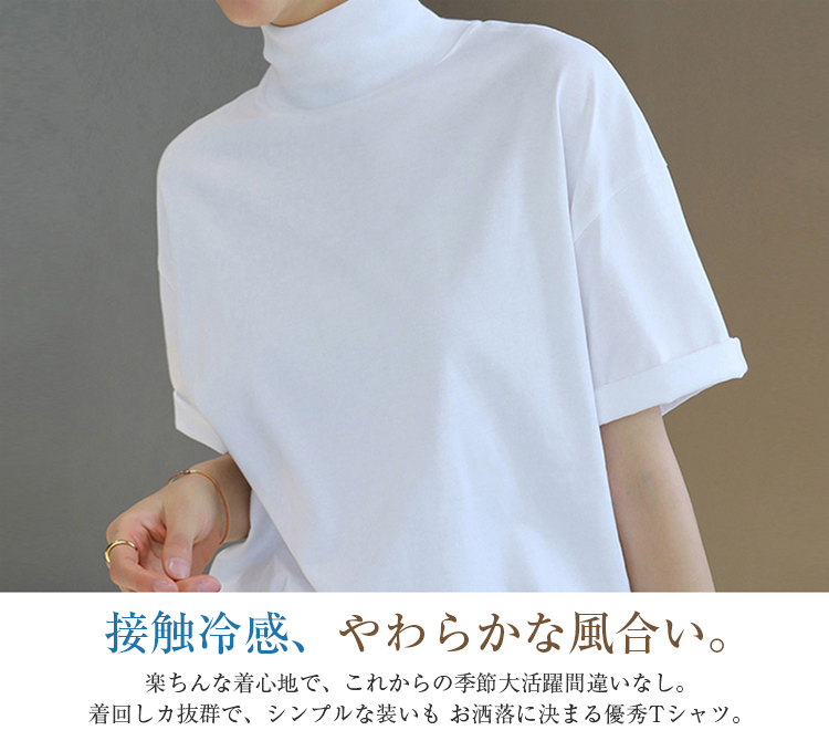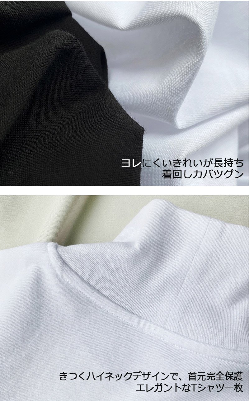 首もとをおしゃれに隠せる ハイネック 夏コットン 柔らか肌触り 首元保護 UV対策 夏Tシャツ 着心地いい