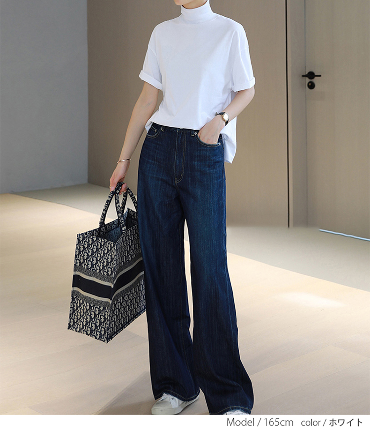 ハイネックデザインは定番のTシャツでも一足違った雰囲気にしてくれるのでおススメです。