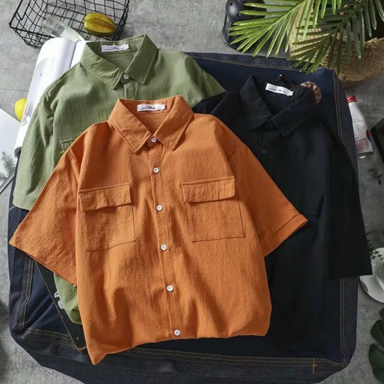 綿麻シャツ カジュアルシャツ 半袖シャ