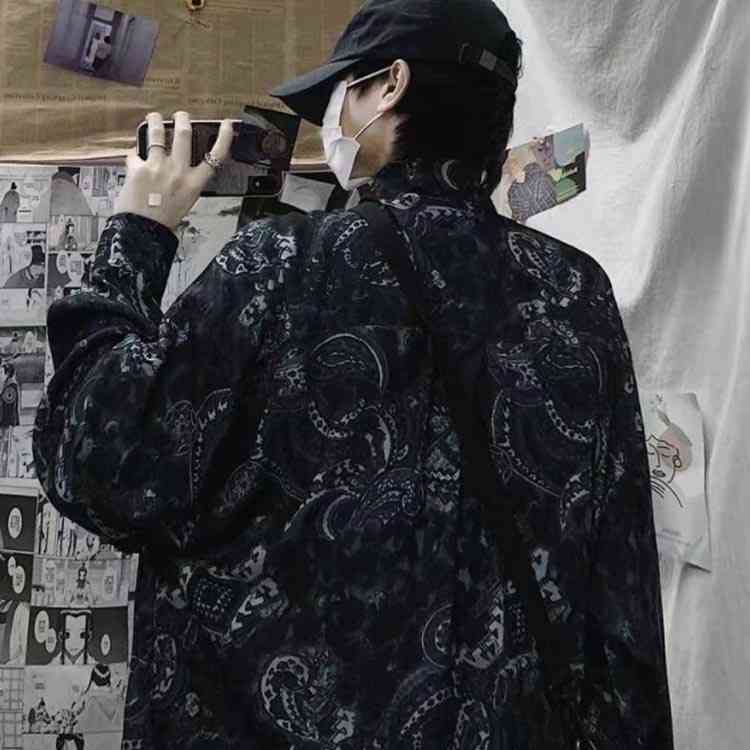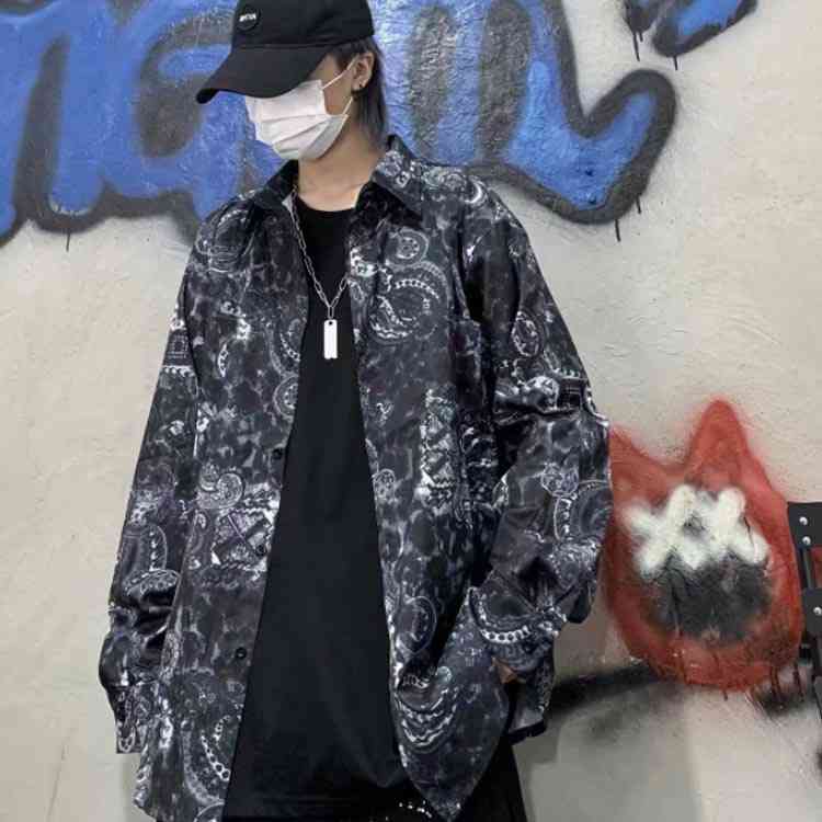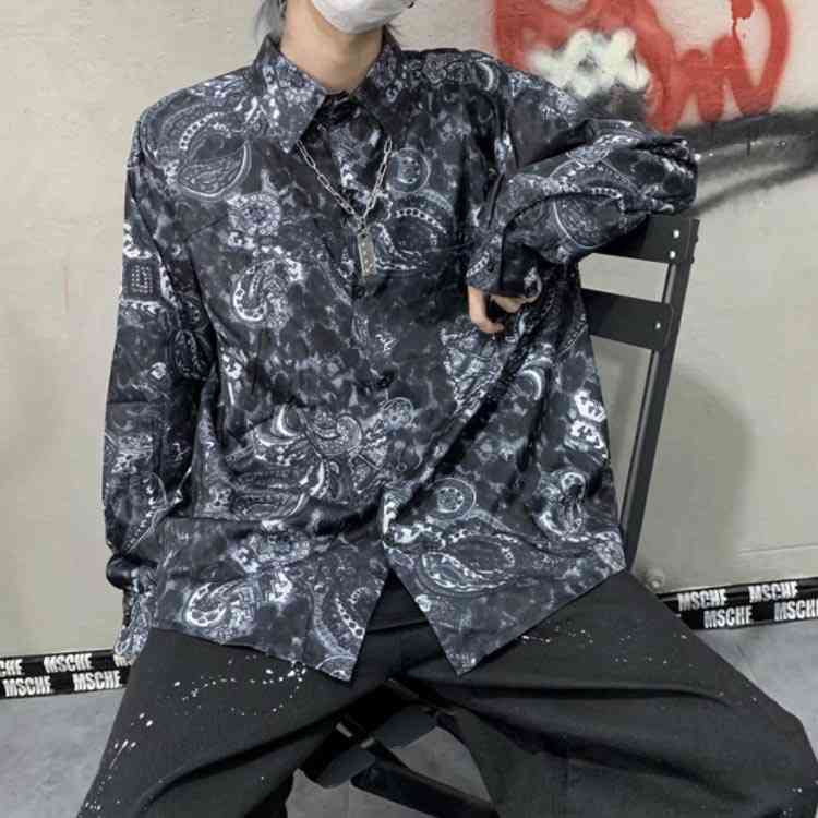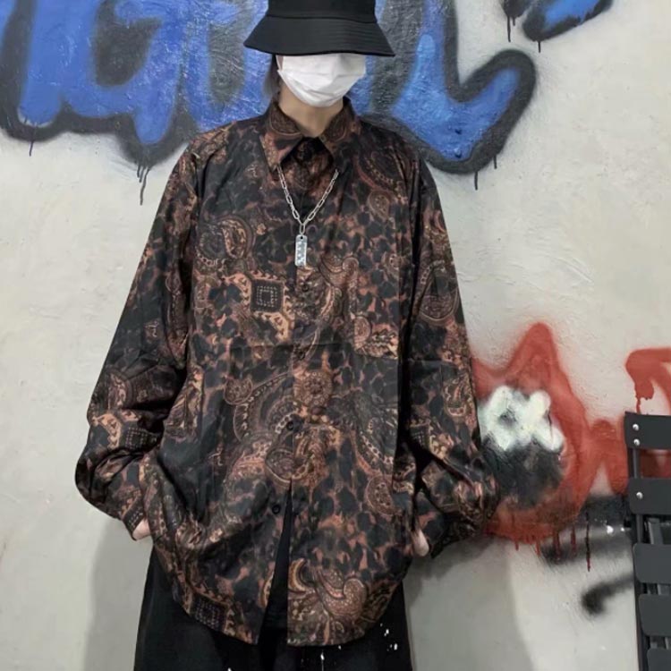 シャツ プリント 総柄シャツ 長袖 ゆ