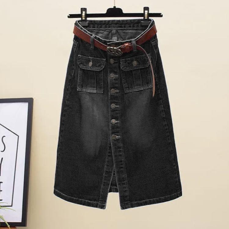 フロントボタン デニムスカート スリッ