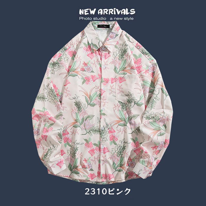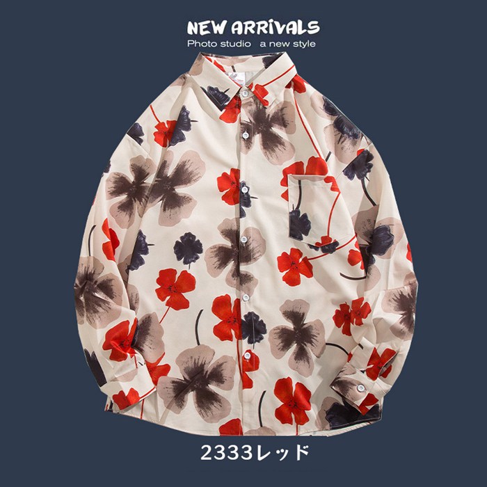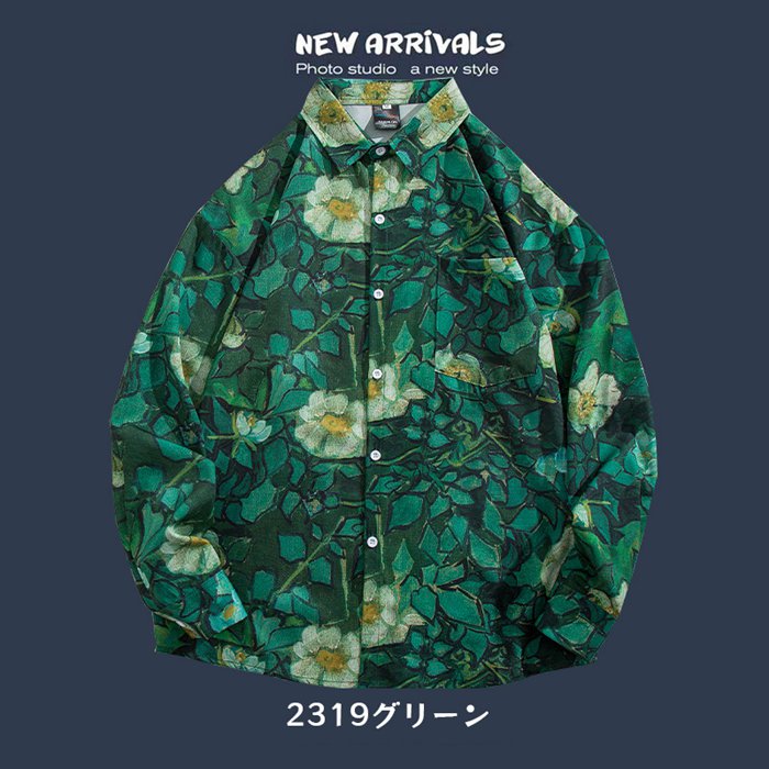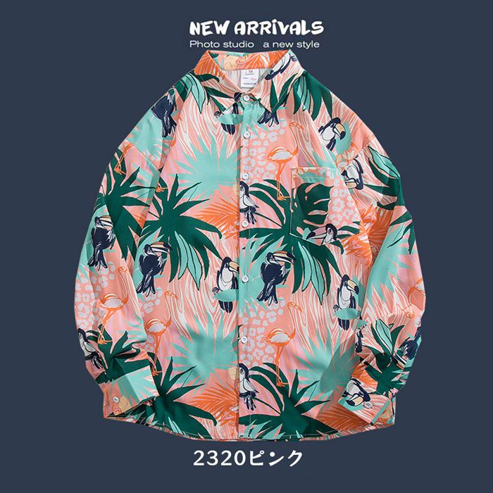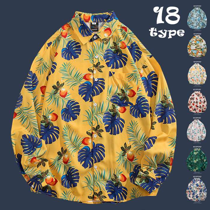 シャツ メンズ アロハシャツ 長袖 花