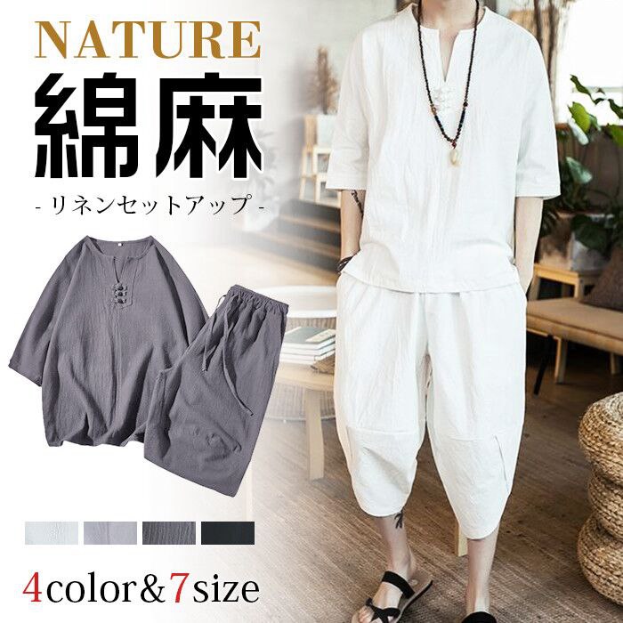 綿麻上下セット セットアップ リネン