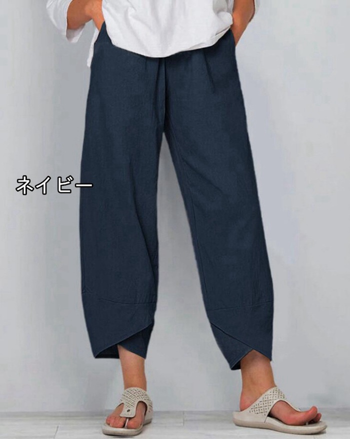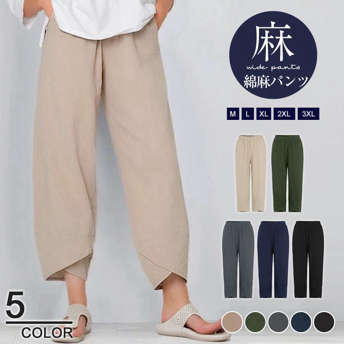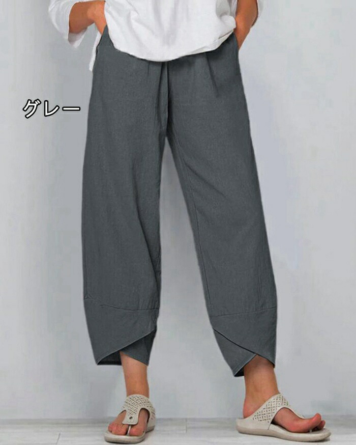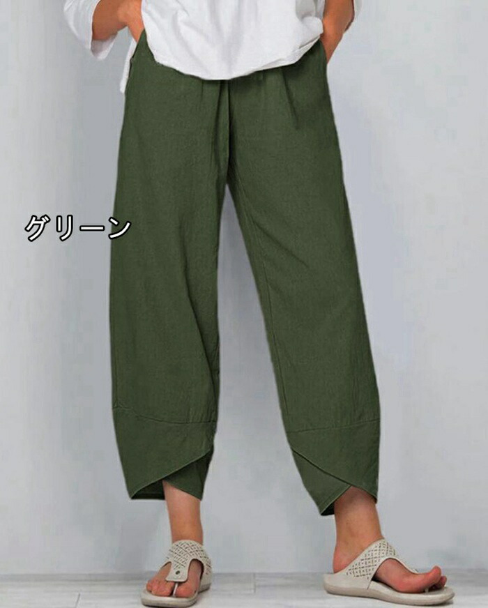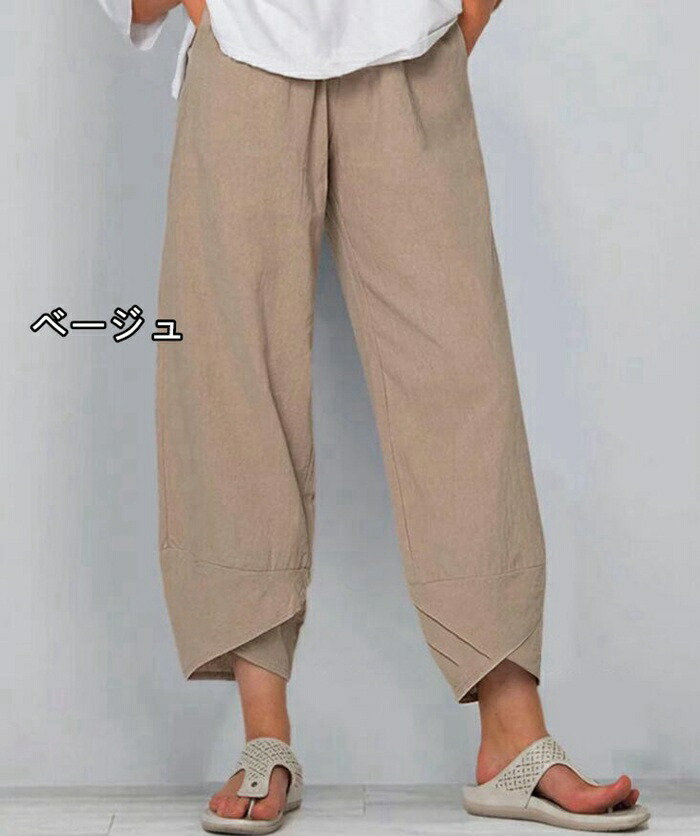 ガウチョパンツ レディース 綿麻パンツ