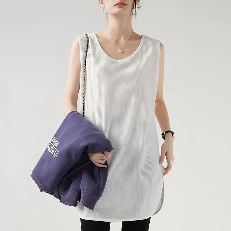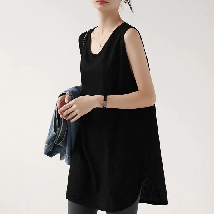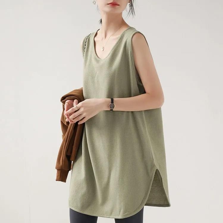 タンクトップレディースTシャツノースリーブUネックロゴプリント