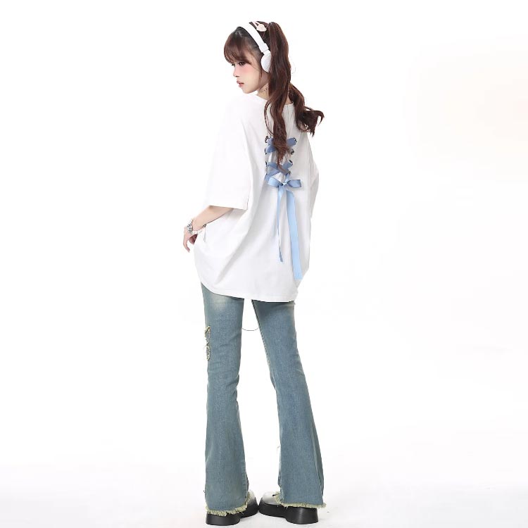 デニムパンツ ビジュー付き
