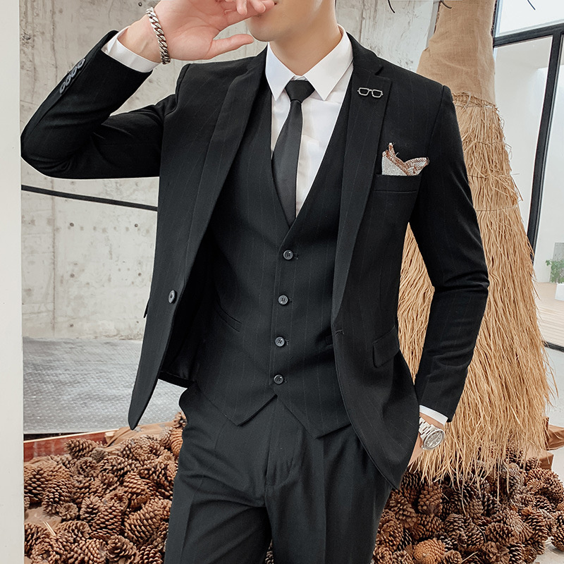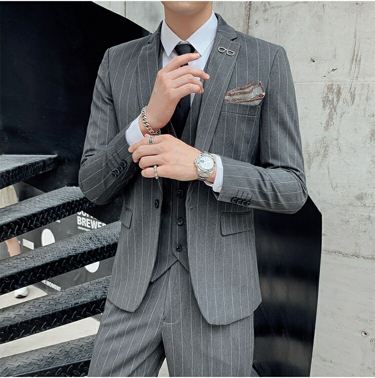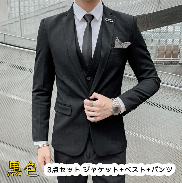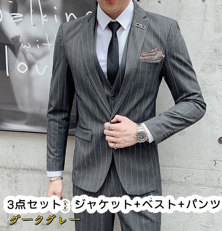 結婚式 成人式 3ピーススーツ メンズ ビジネススーツ スーツ 1つボタン ストライプ柄 フォマールスーツ セットアップ 細身 卒業式 通勤 入学式 秋
