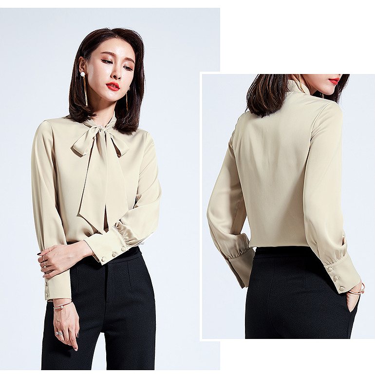 シアースリーブ ドッキングシャツ ボウタイシャツブラウス