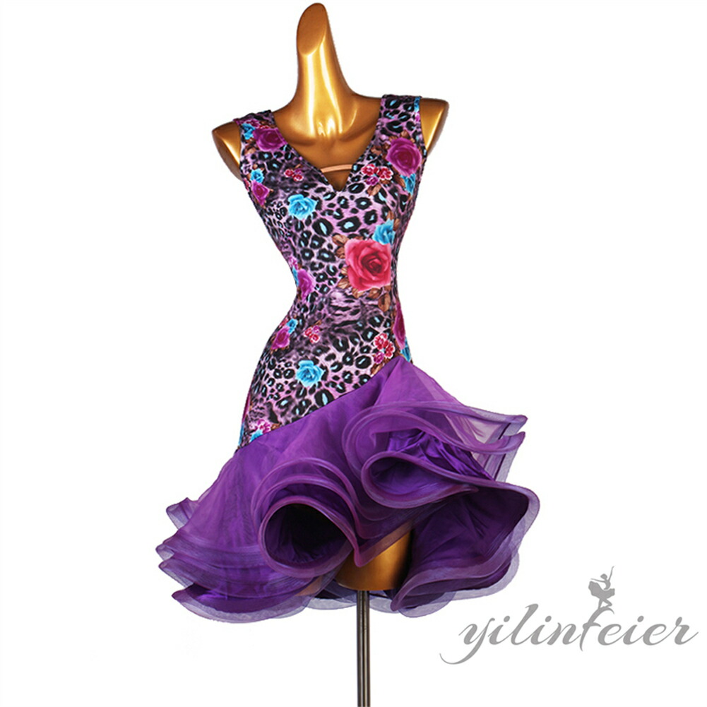 ラテンダンス発表会用ドレス ワルツ ラテン系 ダンスドレス ワルツ用 社交ダンスドレス 発表会用 競技ダンス 豪華 大合唱 フラワー ラテン 開場ドレス ワンピース衣装 ラテンワンピース
