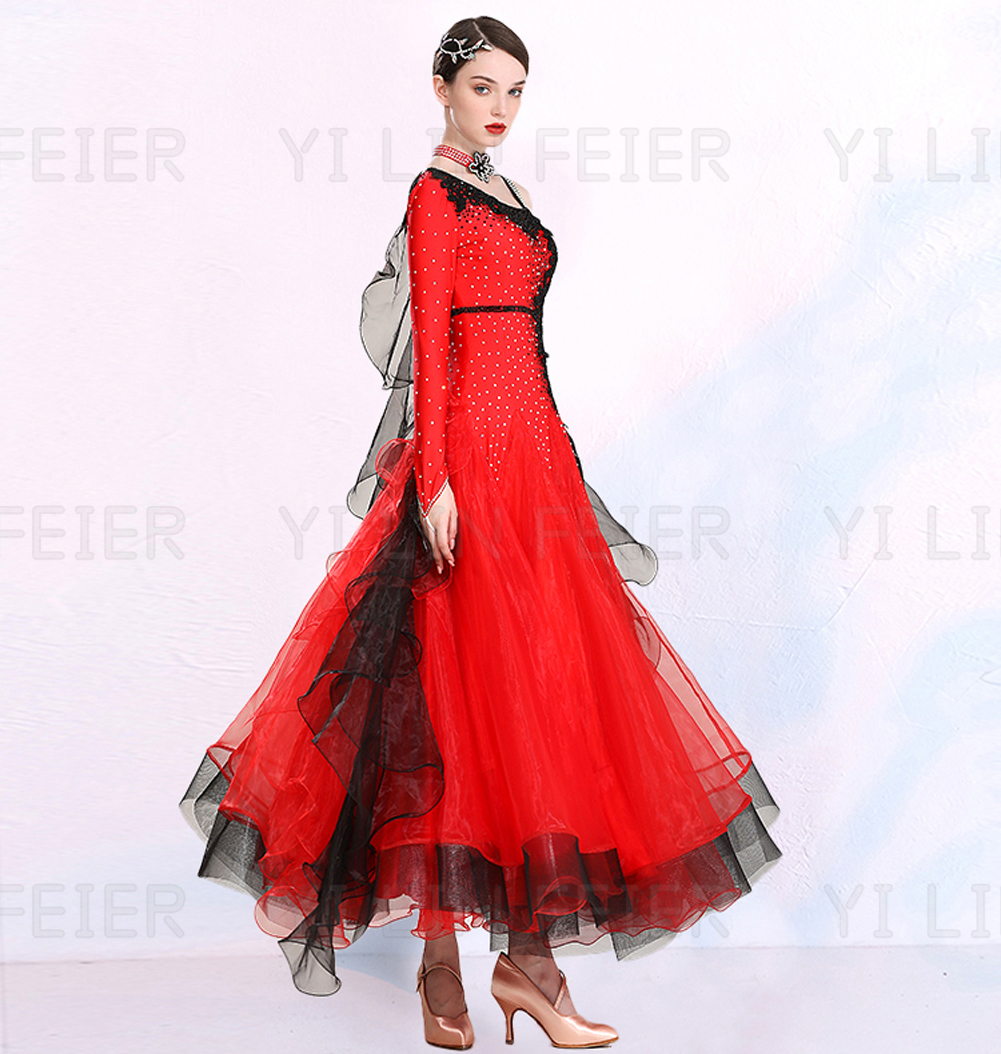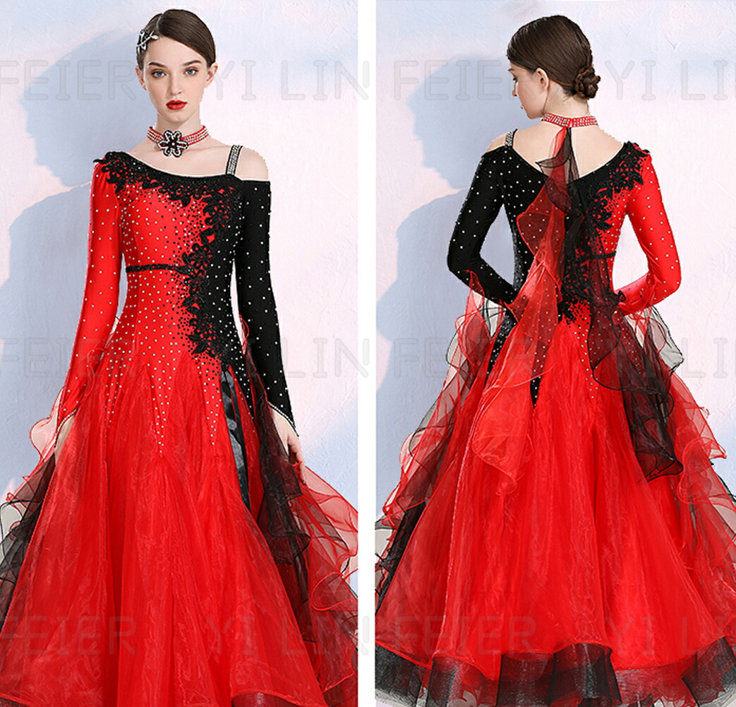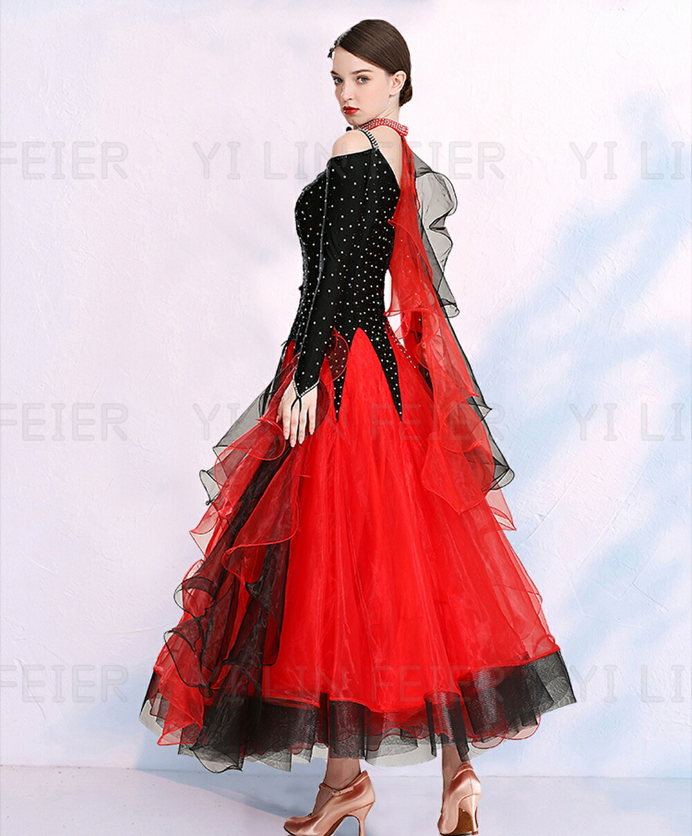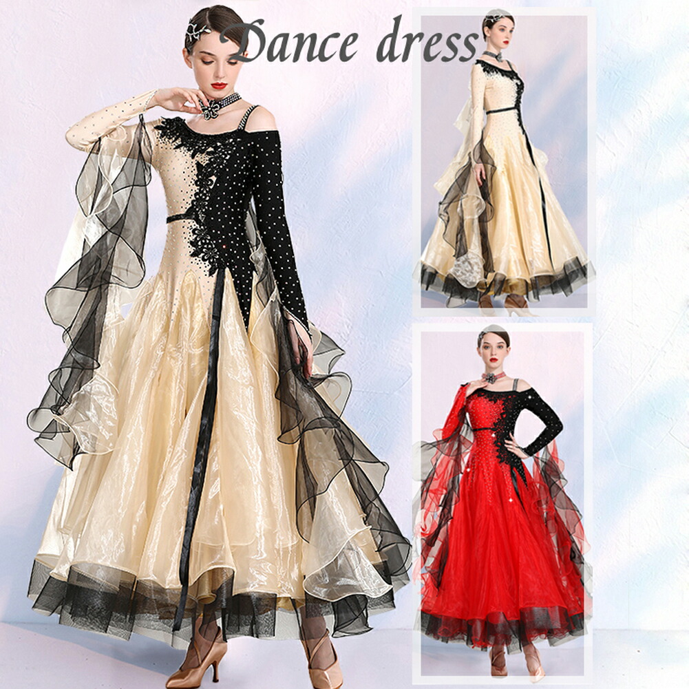 ★女性ワルツダンスドレス大きい裾ワルツに向きセクシーな踊りドレス ダンスドレス 舞踏 踊り ドレス 発表会用ドレス ワンピース 舞台服 社交ダンスドレス