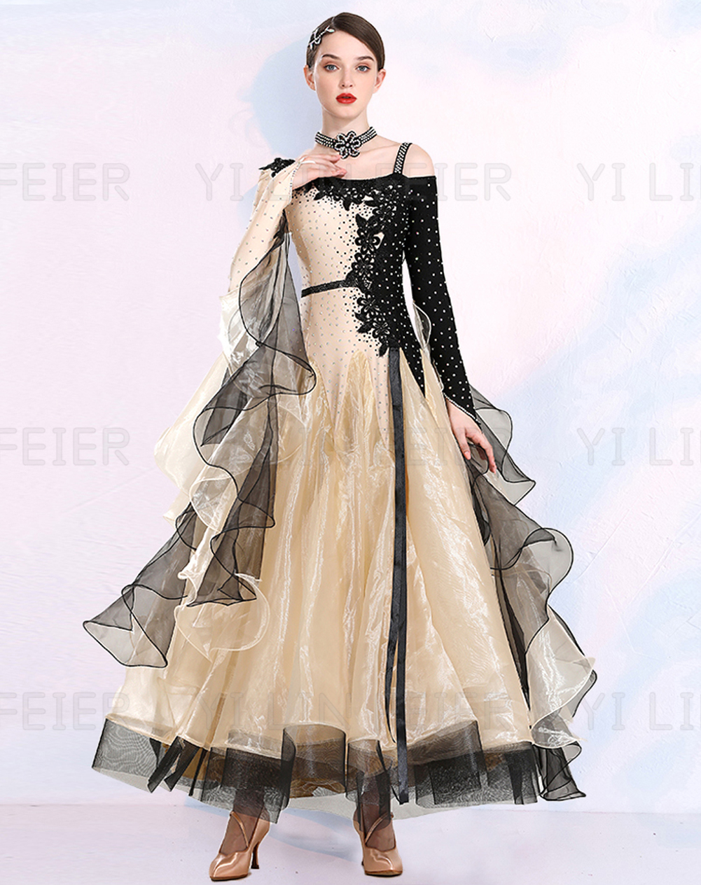 ★こちらもそんな人気を予想させるデザインです。ダンス発表会用ドレス ワルツ ラテン系 豪華 ダンスドレス ワルツ用 社交ダンスドレス 発表会用 競技ダンス