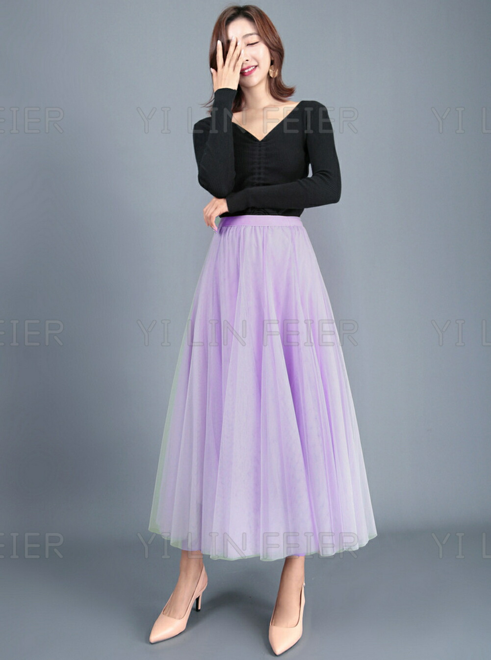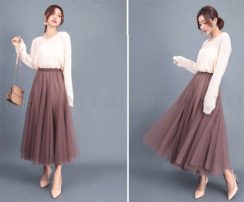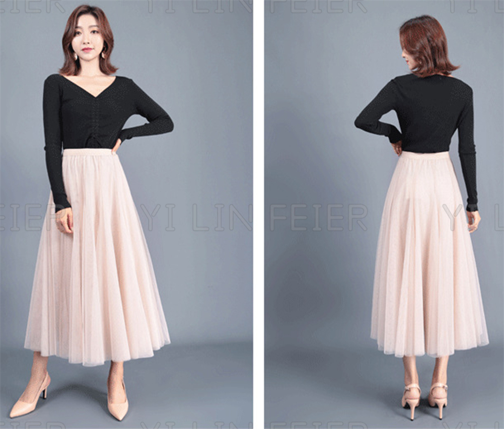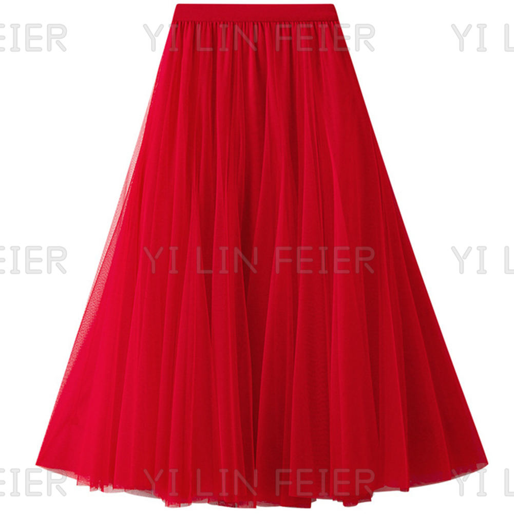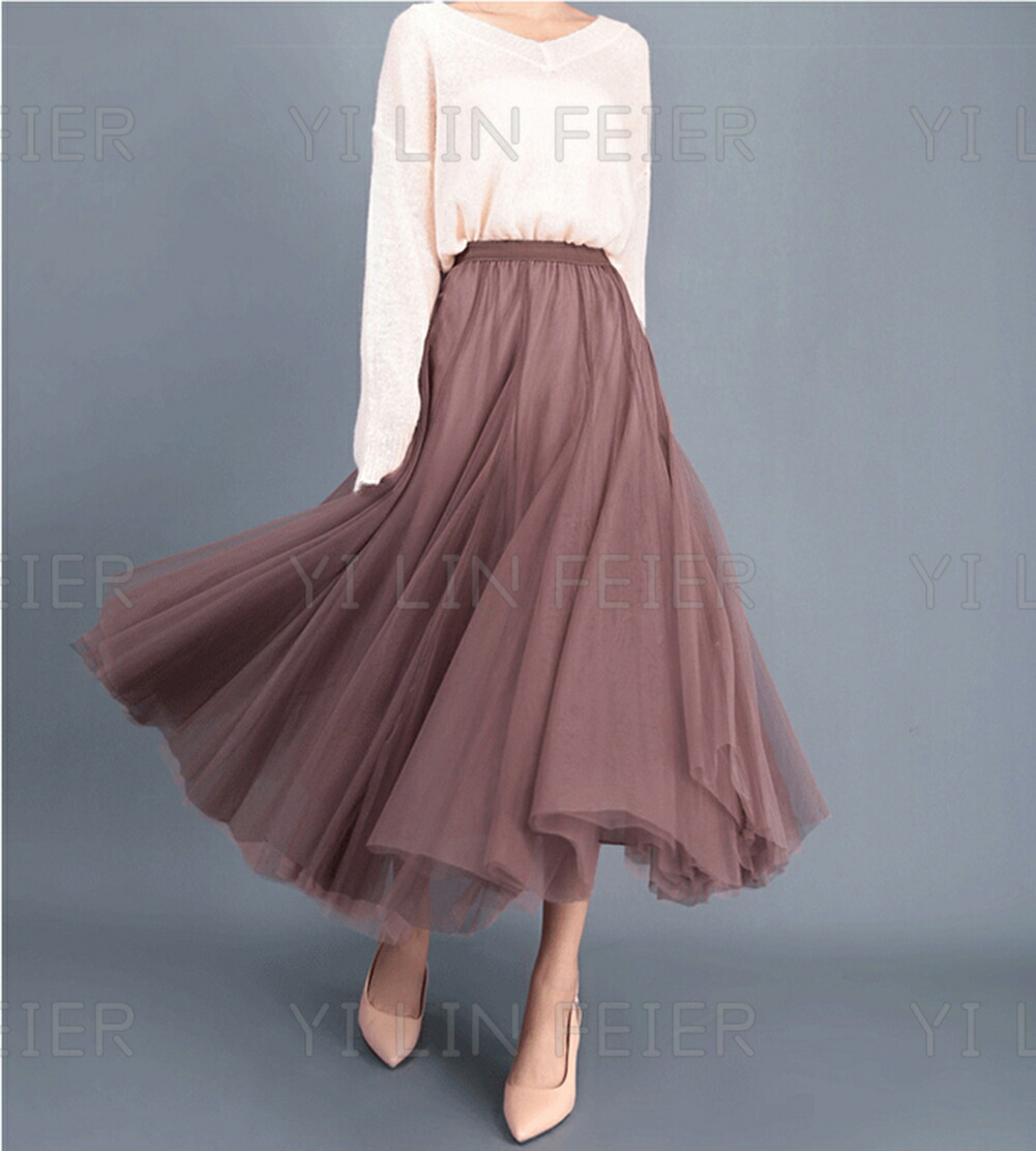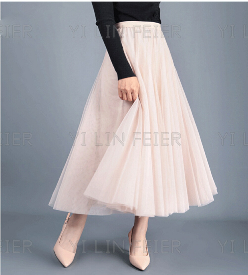 二重チュールの十分なプリーツが入っていて、おしゃれで可愛い雰囲気たっぷりしたロングスカートが登場しました。