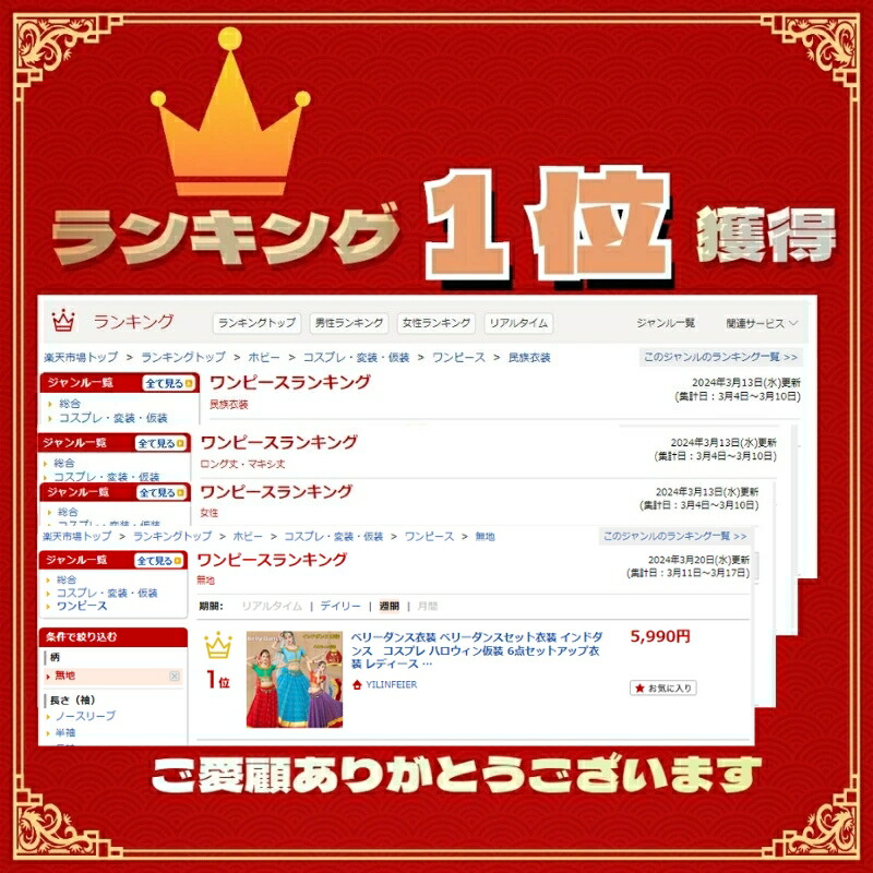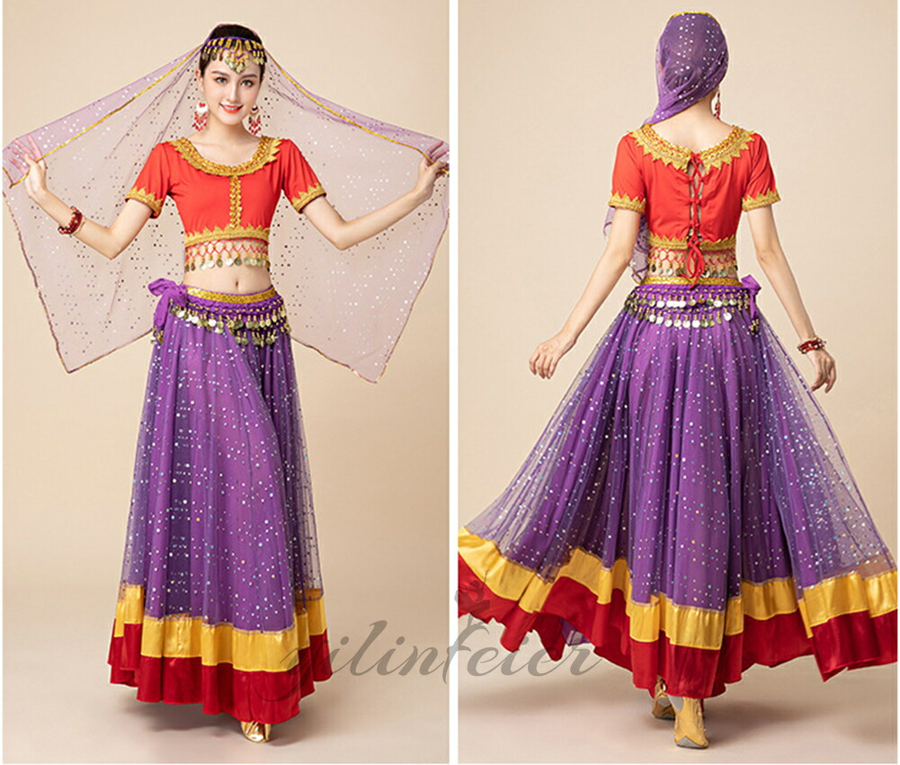 ★素材★ ポリエステル★内容★ 上衣+スカート+ベルト+ベールヘッド+イヤリング+手飾り★適用場合★ 舞台、発表会では優雅で繊細かつ情熱的な貴女の舞いがスポットライトの中で拍手を浴びる事間違いなし。ハロウィンでのコスプレ衣装、忘年会や新年会、カラオケでの演出としても使えるかも。【注意事項】 ▼商品の特性の上返品交換は一切対応しないので、ご了承ください。