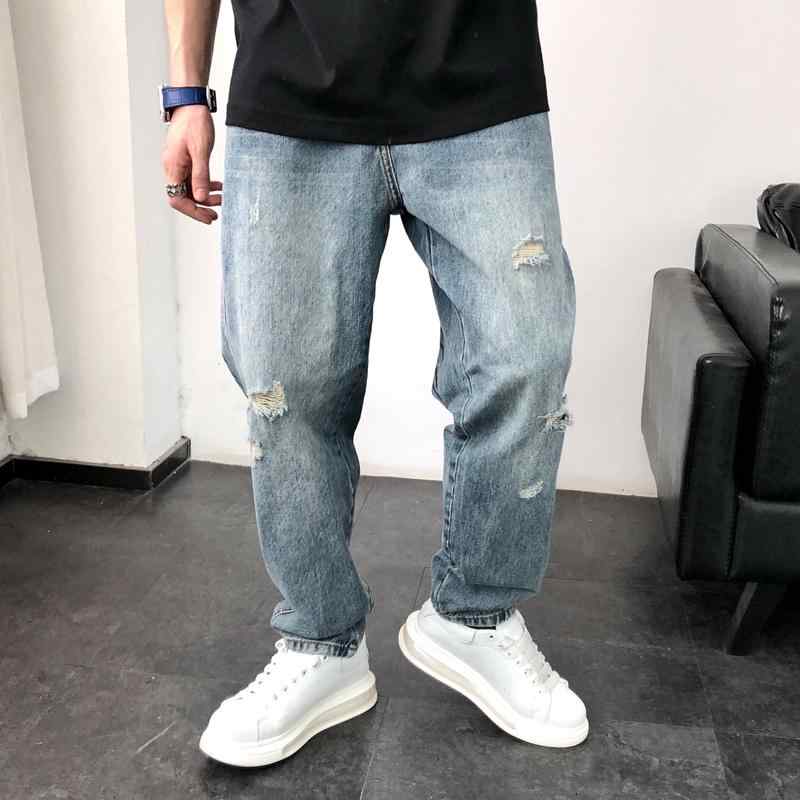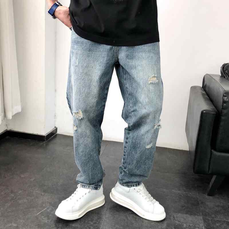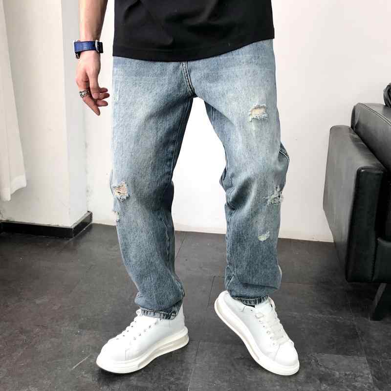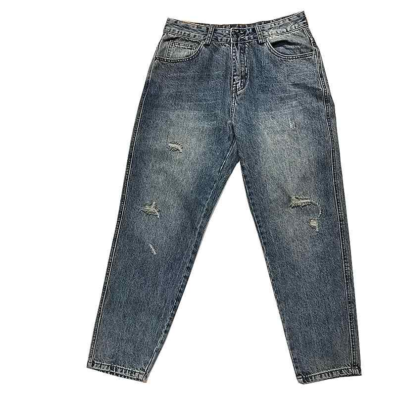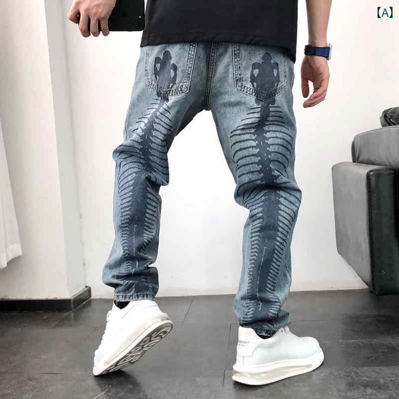 メンズ ファッション 春 夏 秋 冬 かっこいい オシャレ モテ 男性用 紳士服 服 韓国 シンプル 大人 フィッシュボーン バック プリント メンズ ジーンズ ストレート レッグ 小さい 足 ホール