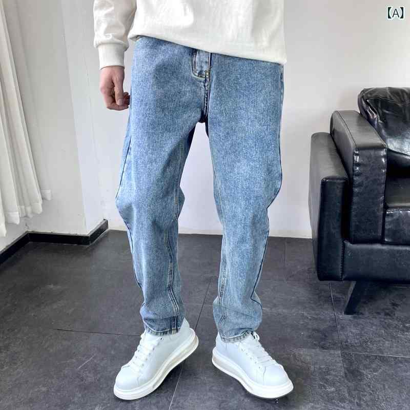 メンズ ファッション 春 夏 秋 冬 かっこいい オシャレ モテ 男性用 紳士服 服 韓国 シンプル 大人 ライト カラー ジーンズ メンズ 韓国 スタイル カジュアル ストレート レッグ パンツ 快