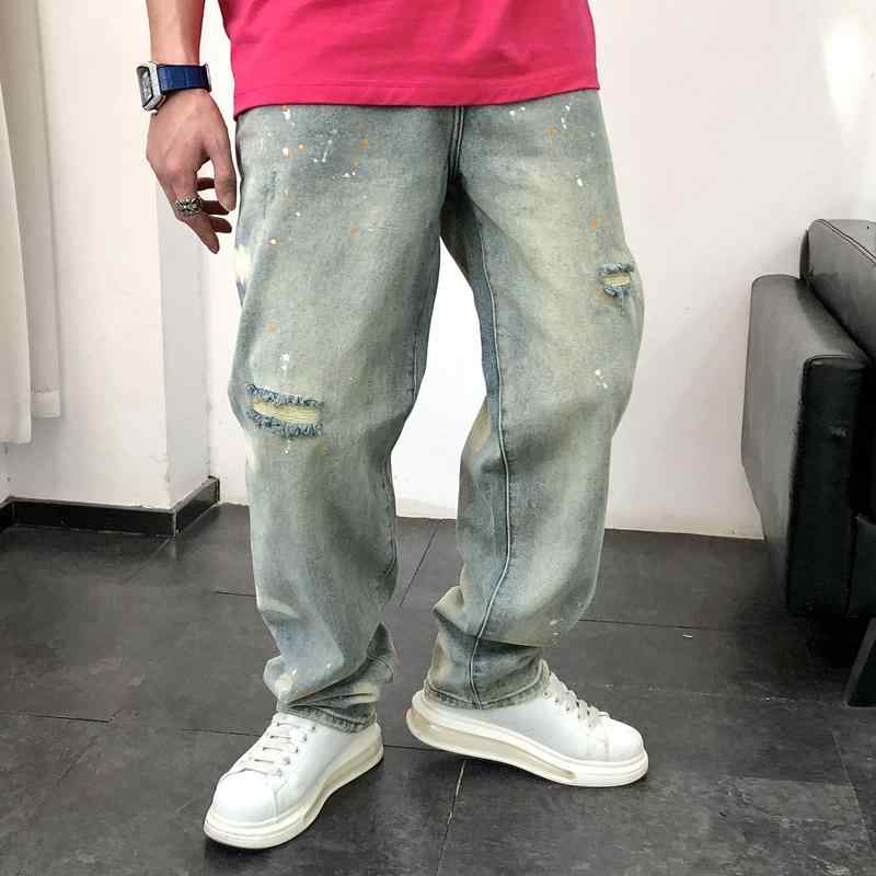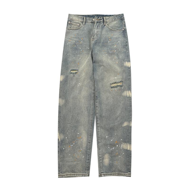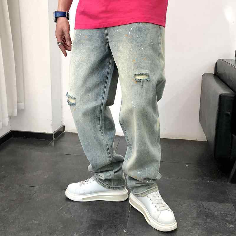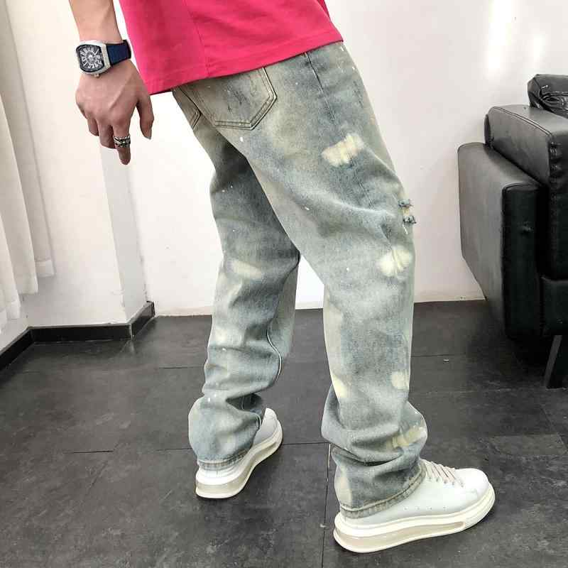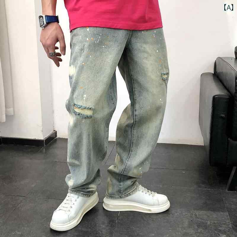 メンズ ファッション 春 夏 秋 冬 かっこいい オシャレ モテ 男性用 紳士服 服 韓国 シンプル 大人 メンズ リッピング ホール スプラッシュ ク ジーンズ 春 新 ストレート 古風 カジュアル